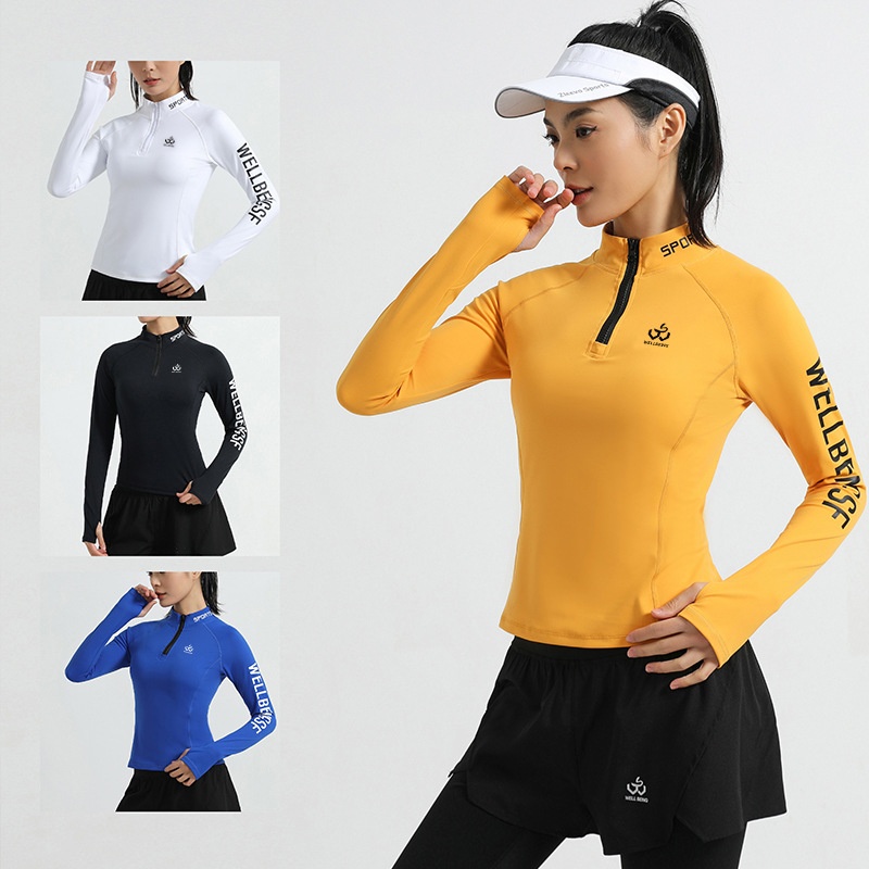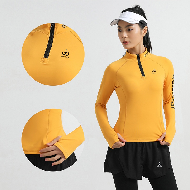 Spring And Autumn Outdoor Half Zip Stand Collar Slim Fit Long Sleeve Sweatshirt Quick-drying Sports Top Running Group Fitness Training Jacket For Women