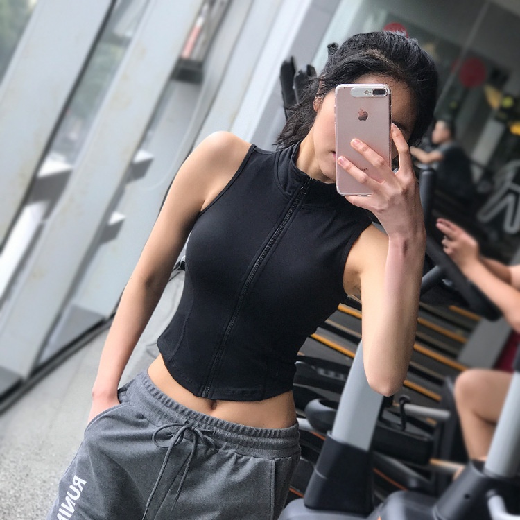Sexy Slim Sports Vest Vest Women's Fitness Waistcoat Sleeveless Running Zipper Top Tight Yoga Clothes