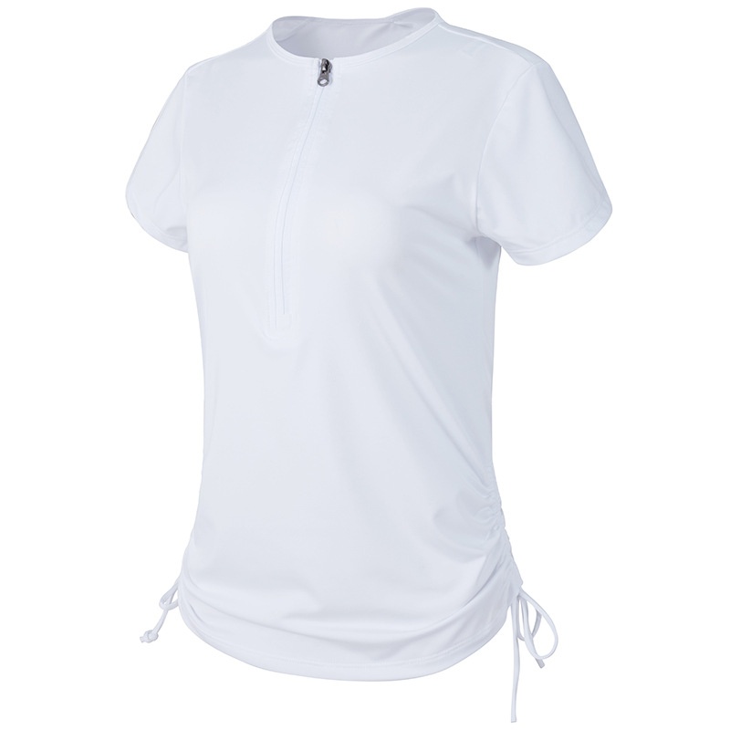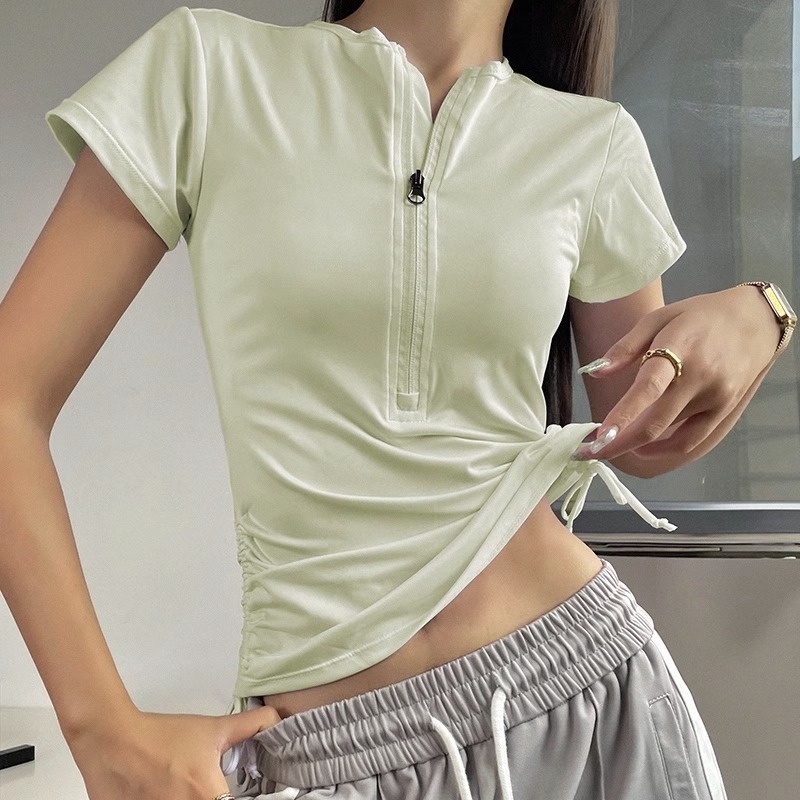 Half-zip Drawstring Yoga Clothes Women's Fitness Short-sleeved Tops Slim Stretch Sports T-shirt Thin Section