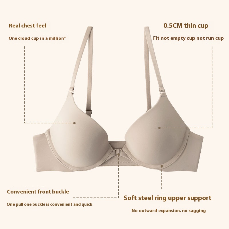 Thin Sexy Bra Front Buckle Underwear Women's Ultra-thin Small Chest Gathered Adjustable Soft Steel Ring Bra Bra