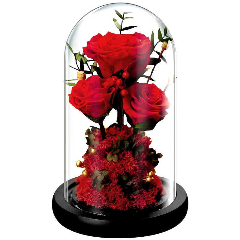 Creative Decoration Eternal Flower Finished Dried Flower Rose Glass Cover Gift Box Mother's Day