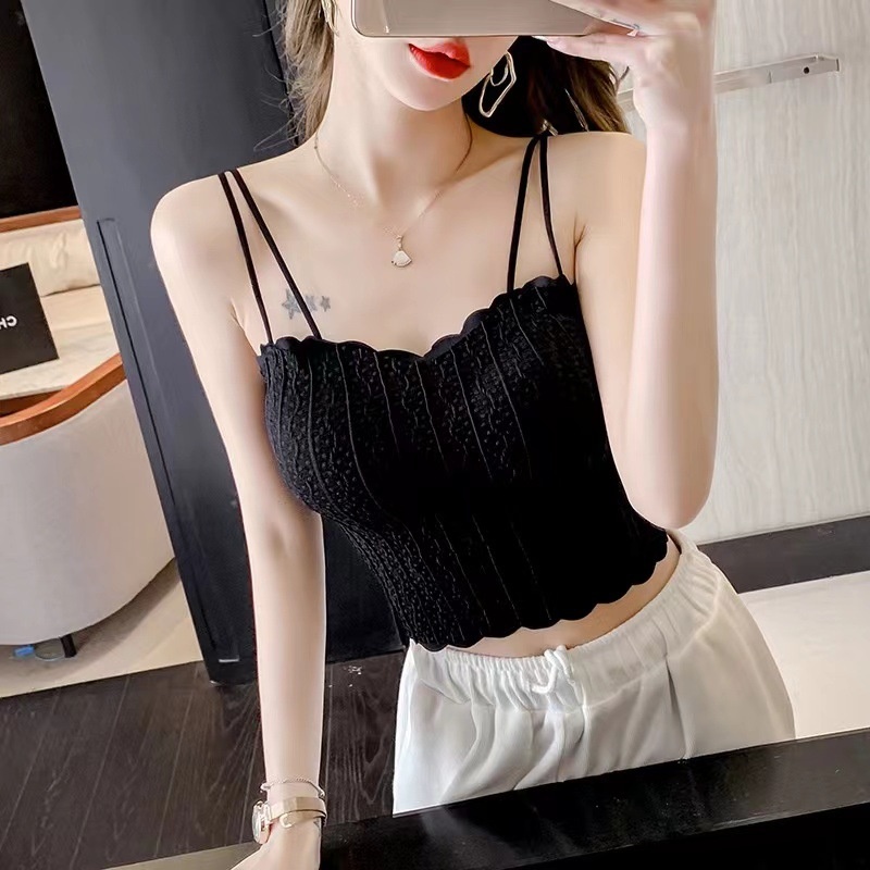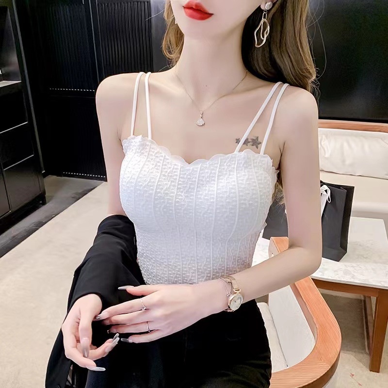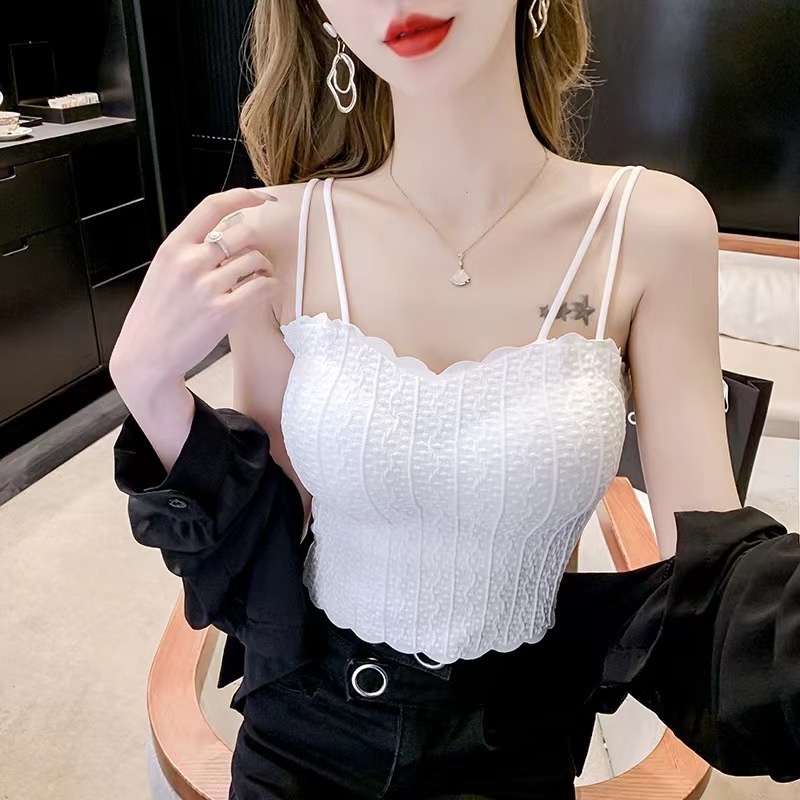 Style Ice Silk Beautiful Back Camisole Vest For Women In Summer With Chest Pad Lace Tube Top Wrapped Chest Base Inner Wear Underwear Outer Wear