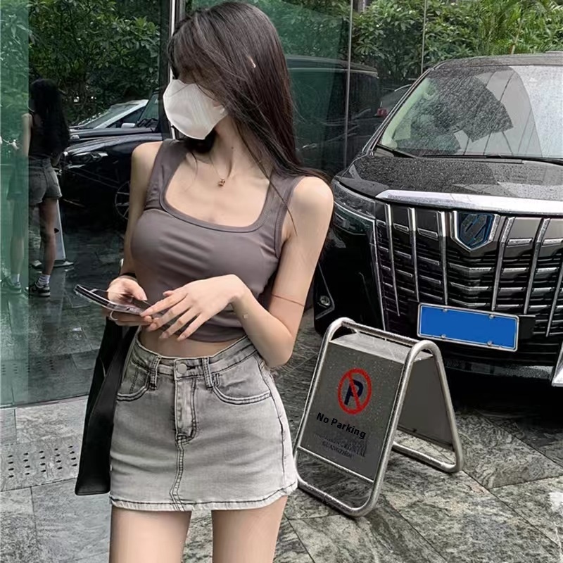 Summer Korean Square Neck Clavicle-revealing Sleeveless Vest With Chest Pad For Women All-match White Tube Top Bottoming Top