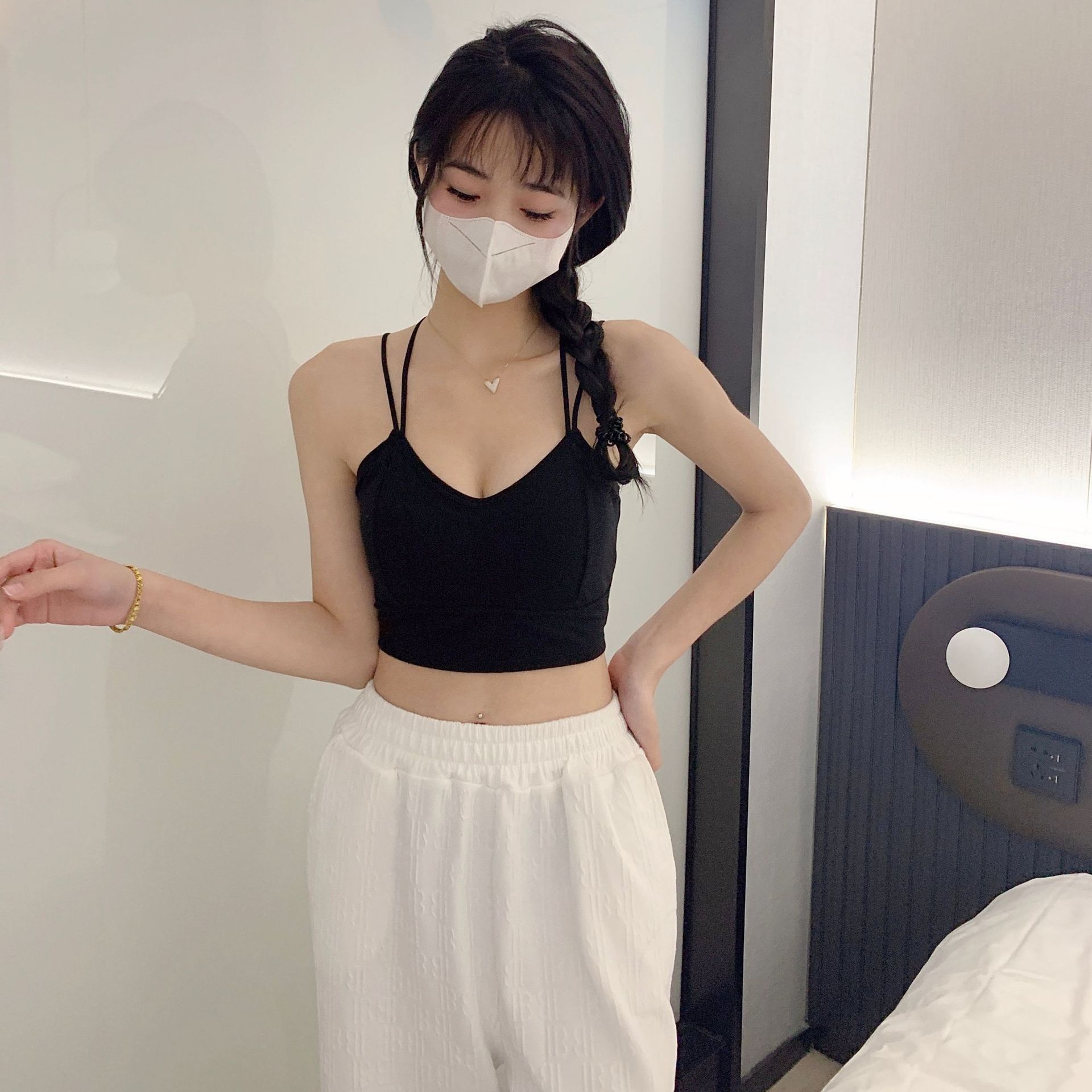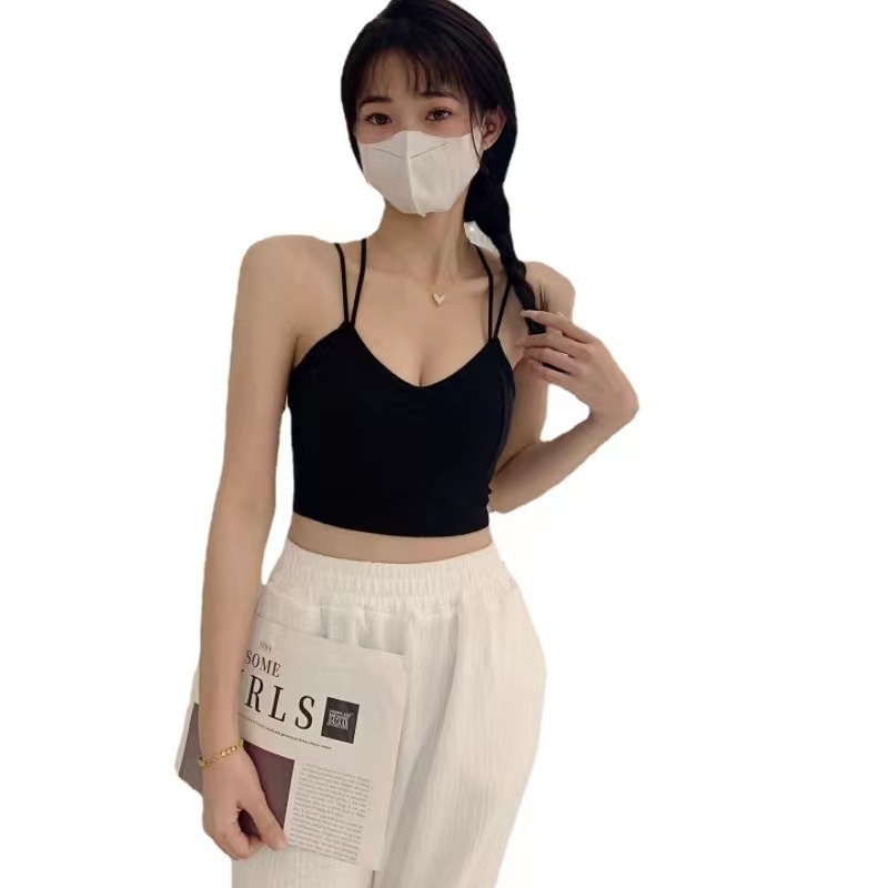 Spring And Summer Solid Color Double Shoulder Straps Cross Beautiful Back Camisole Breathable Hole Fixed Cup Underwear Women's No Steel Ring