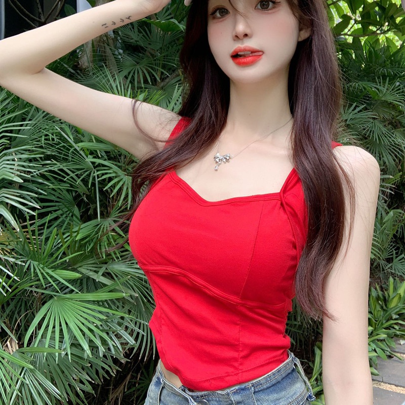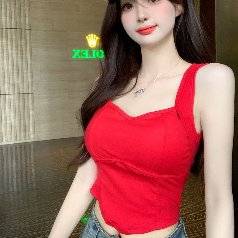 Summer Padded Camisole Vest Slim Fit Hong Kong Style Hot Girl Backless Waist Niche Design Tube Top