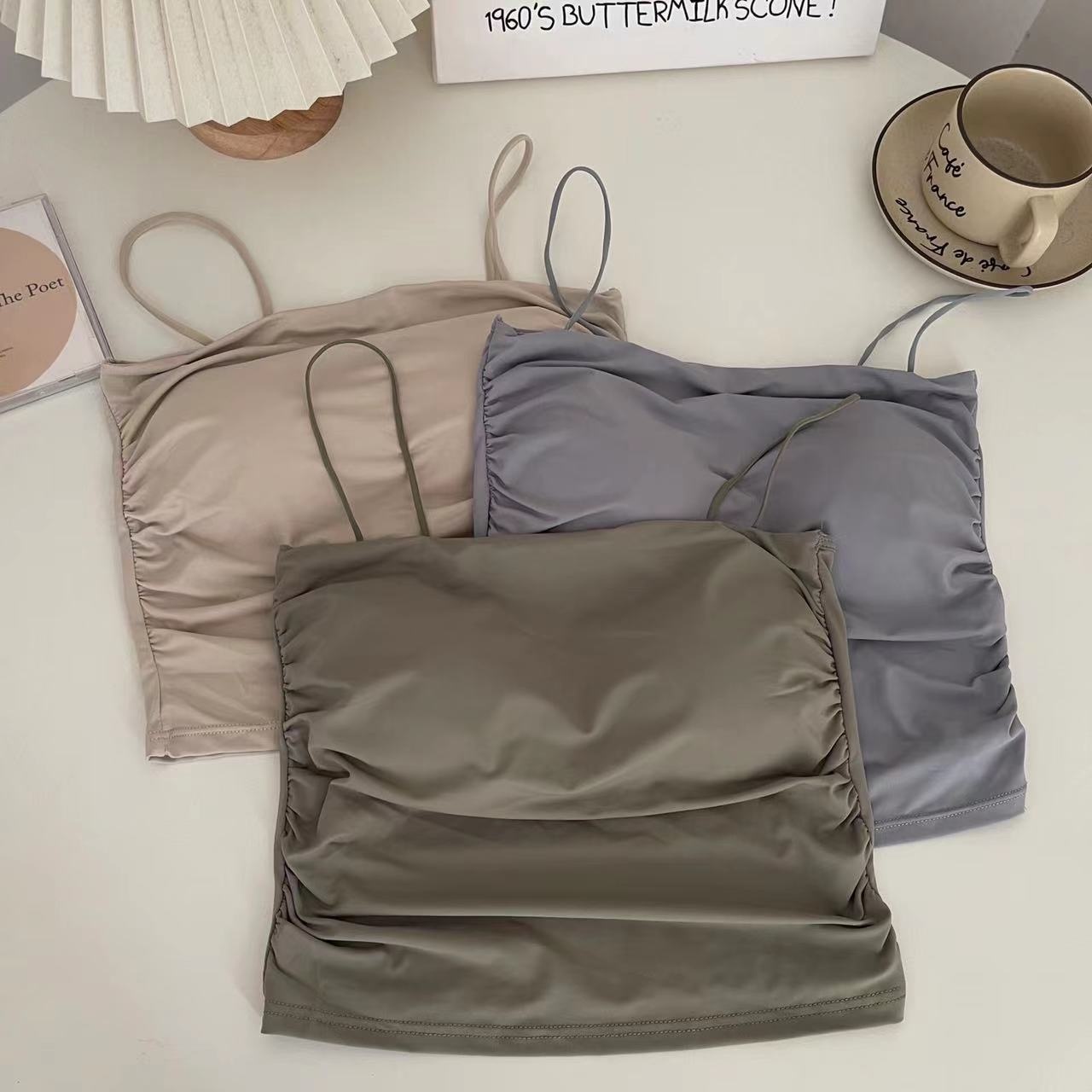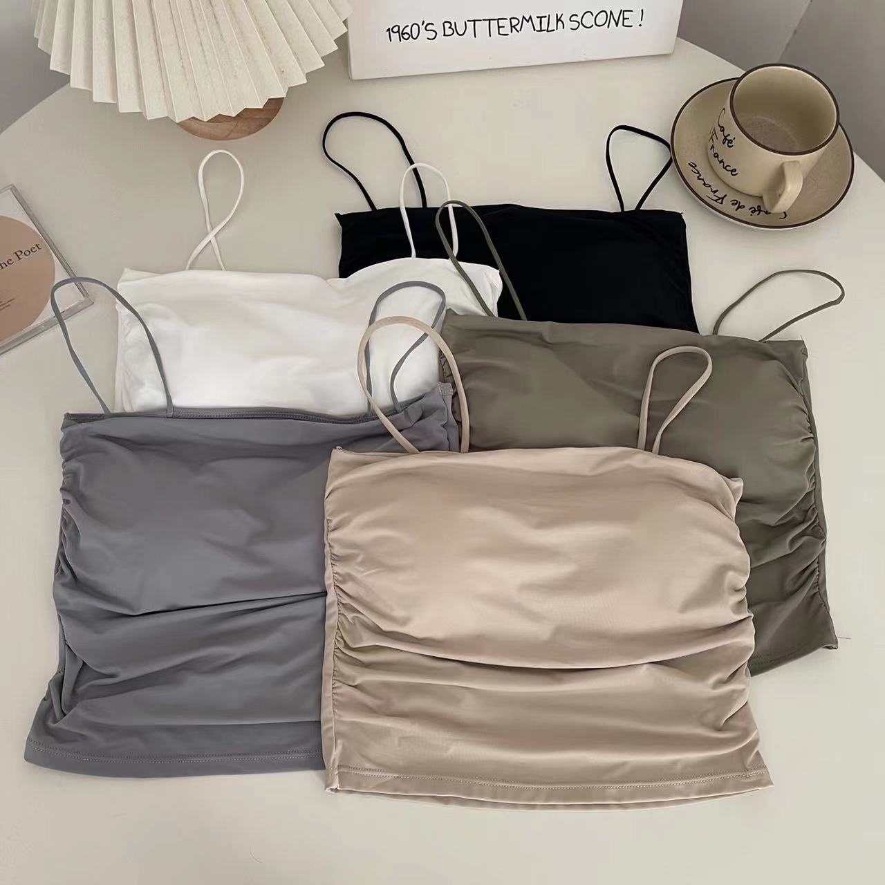 Summer Latex Ice Silk Small Sling Beautiful Back Women's Short Inner Wear Outer Wear Short Fixed Cup With Chest Pad Vest