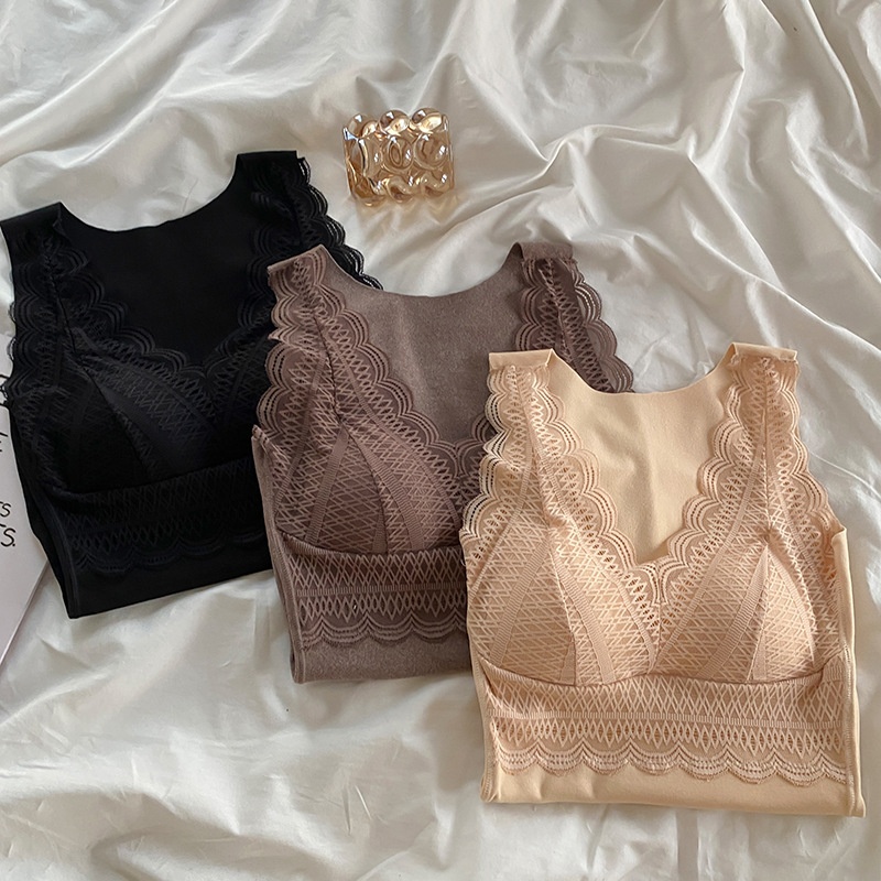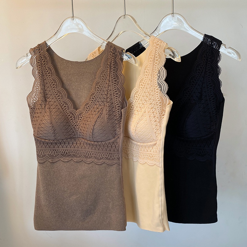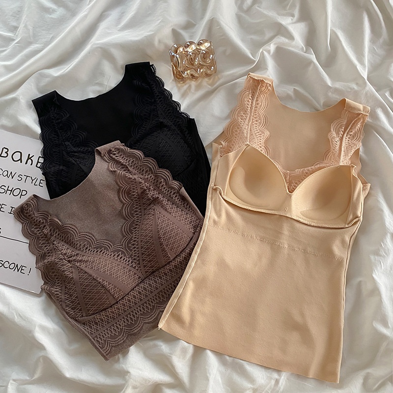 Seamless Warm Vest For Women With Velvet,Thin And Slim Fit,Lace And Chest Pad Bottoming Shirt,German Velvet Vest Underwear Slim Fit