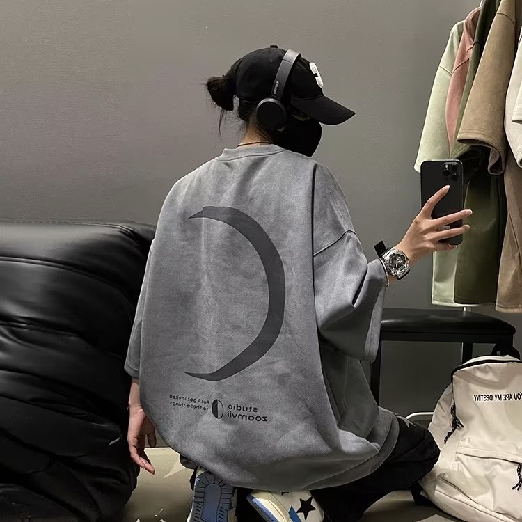 Summer Deerskin Moon Print Men And Women Couples American Casual Loose Neutral Style Short-sleeved T-shirty Korean Version