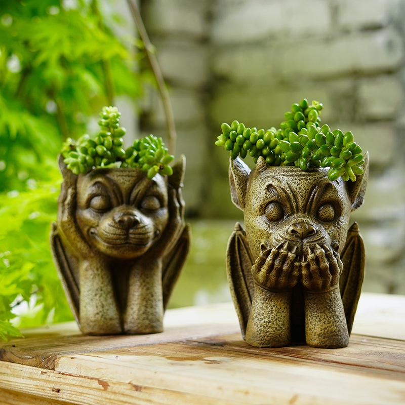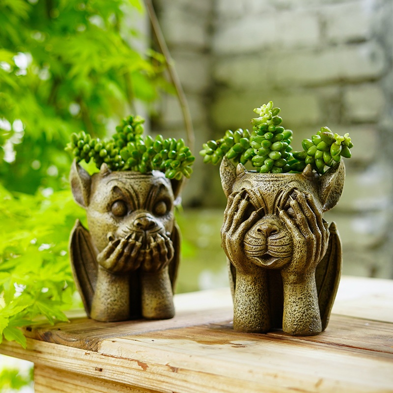 Creative Cartoon Three No Sculpture Fleshy Flower Pot Grass Head Doll Potted Vase Garden Courtyard Decoration Ornaments