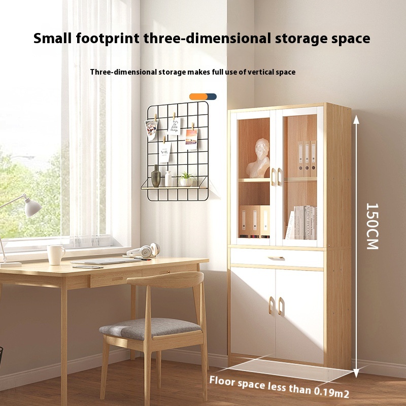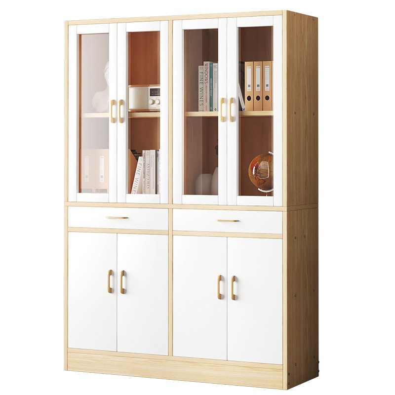 Y D Solid Wood Bookcase Study Living Room High Storage Shelf Glass Door Nordic Retro Display Cabinet Storage Bookcase