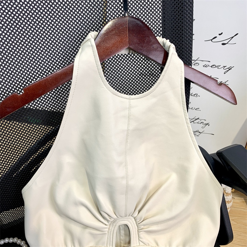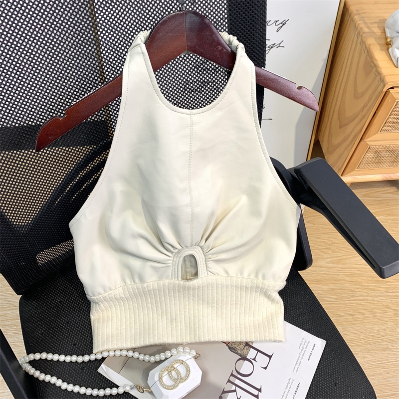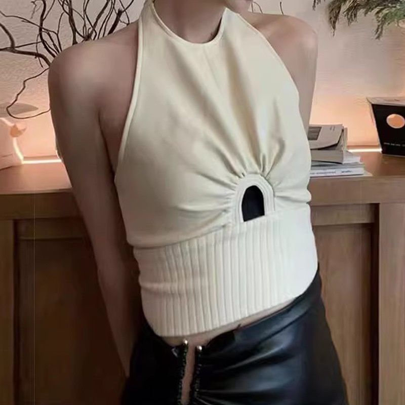 Cream Thousand-layer Hot Girl White Sexy Big Backless Hollow Sleeveless Halter Neck Vest Pure Desire Inner Top