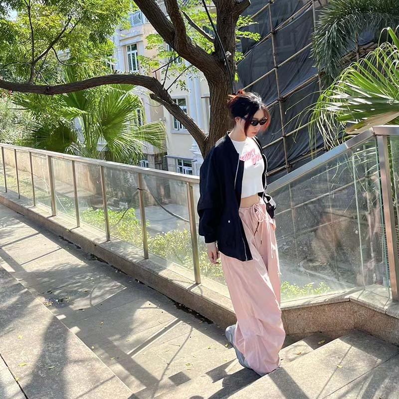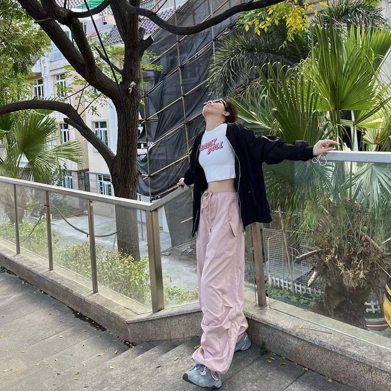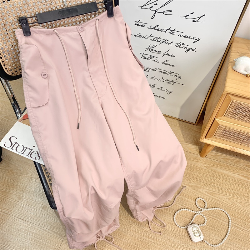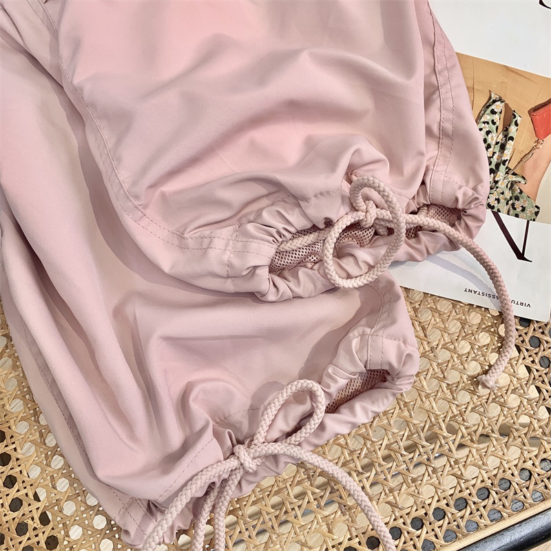 Vitality Limited Color~Dark Cream Pink90s Retro Super Loose Paper Bag Pants Summer