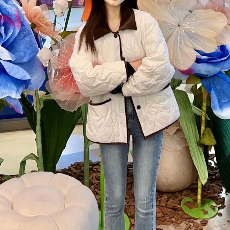 In Stock Style Corduroy Splicing Small Square Collar Quilted Clothing Women's Loose Slim Warm Coat