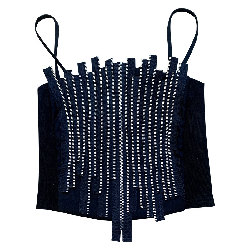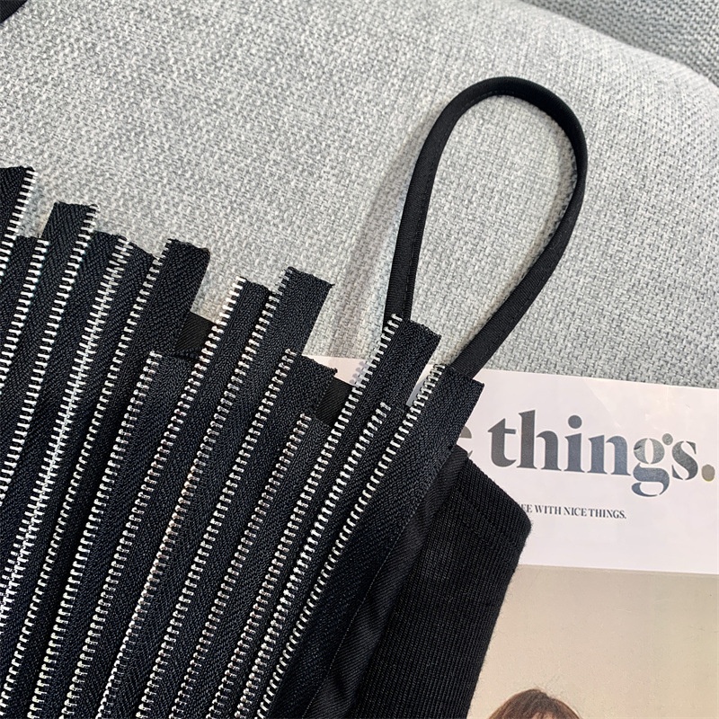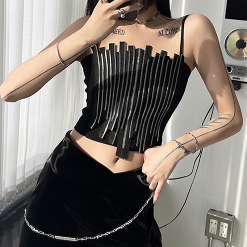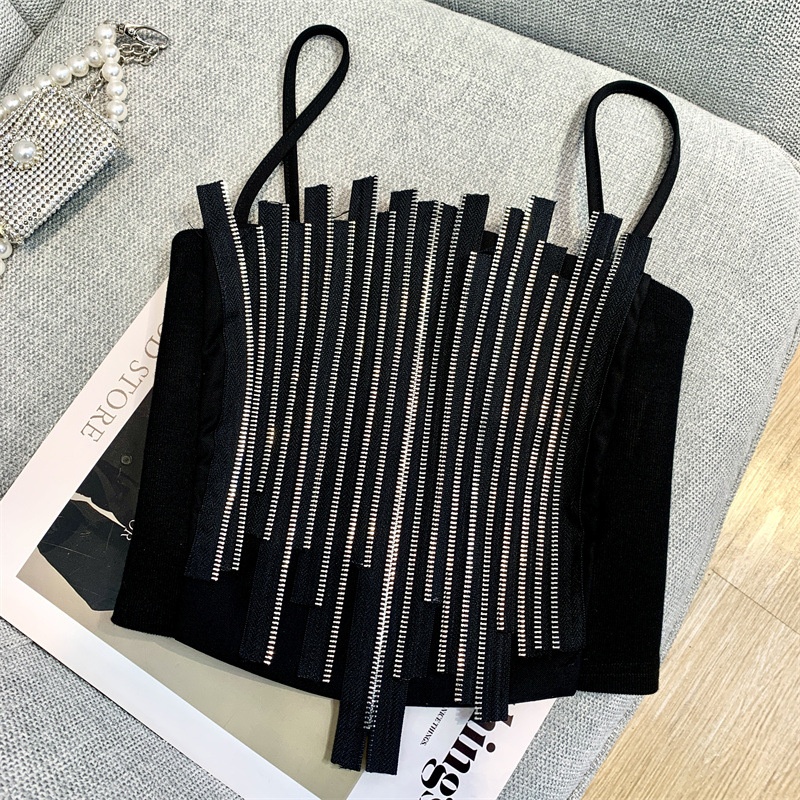 Rescue Free Black Multi-layer Texture Zipper Stitching Camisole Sexy Tops For Women