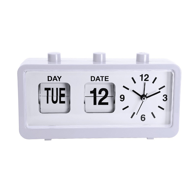 Office Desktop Page-turning Clock Simple Silent Sweep Second Student Alarm Clock Can Display Date Clock Button Page Turning