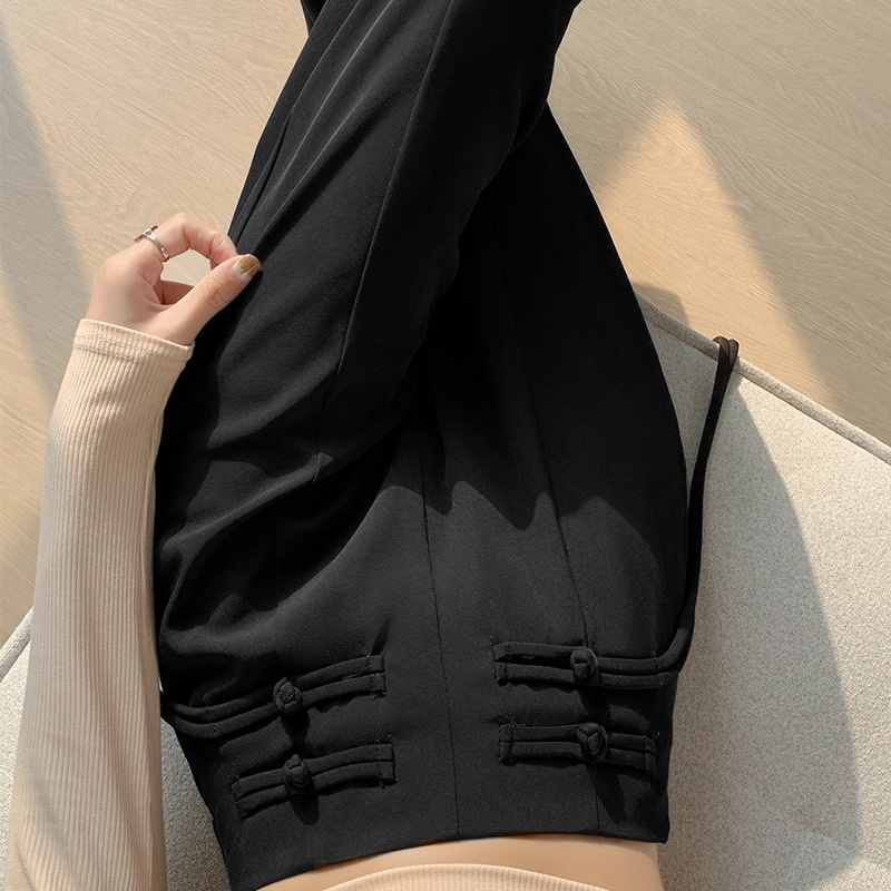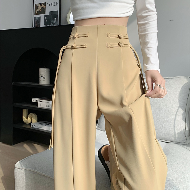 Chinese Style Buttoned Suit Pants For Women Spring Design High Waist Narrow Version Wide Leg Pants Chinese Style Casual Mopping Pants