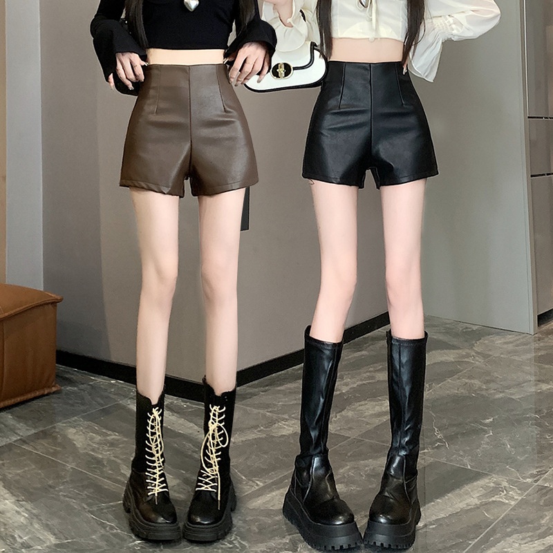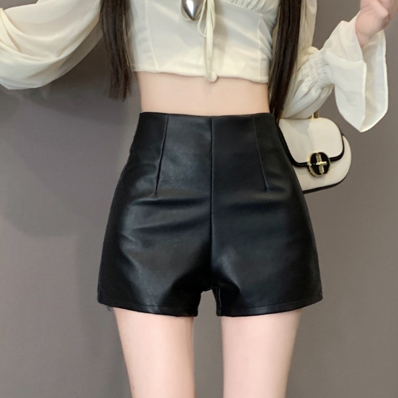 Real Shot All-match Stretch PULeather Shorts Women Spring And Autumn Hot Girl Hot Pants High Waist Slim A-line Shorts Leather Pants