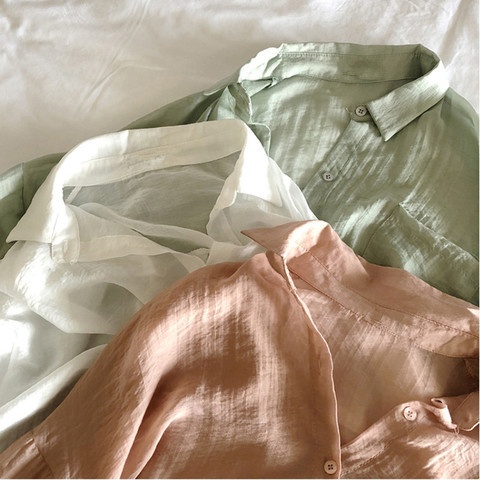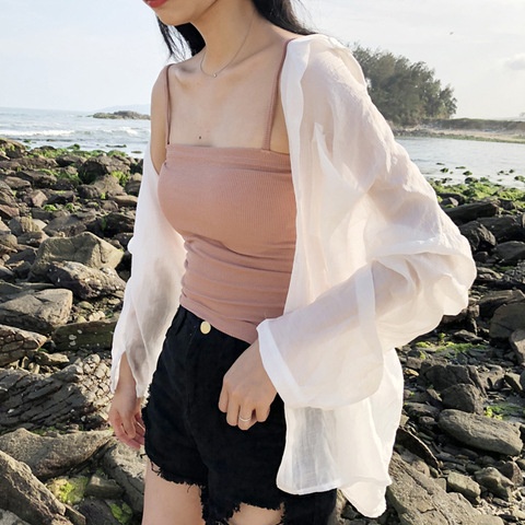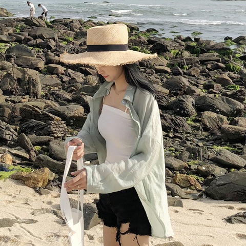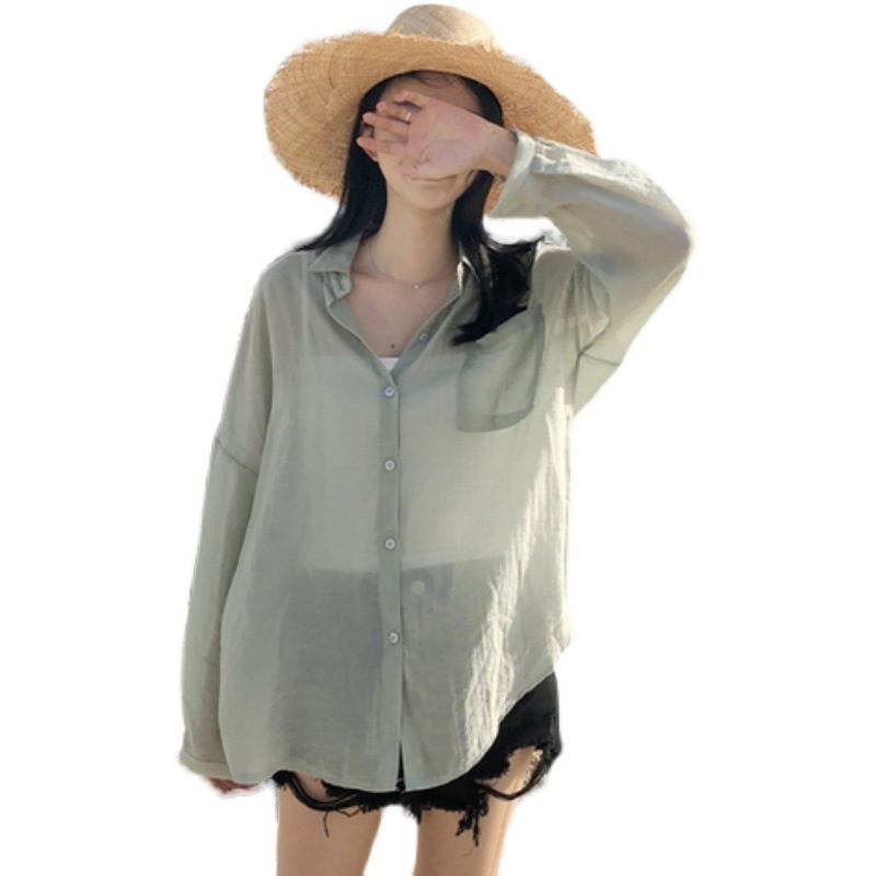 Beach Vacation Solid Color Loose Slim Thin Sun Protection Shirt Female Summer Casual Shirt Top