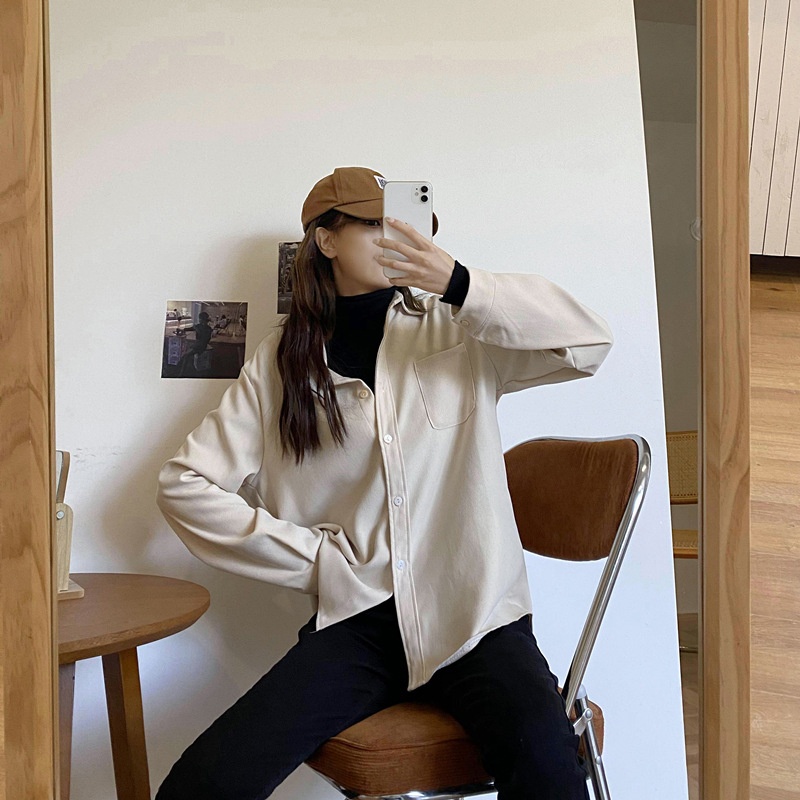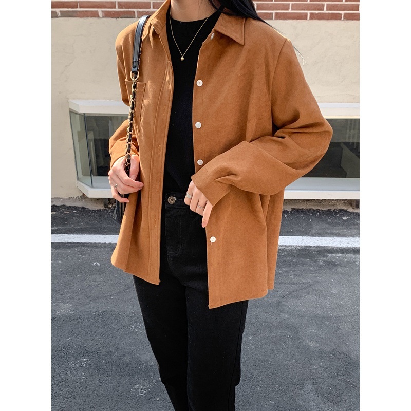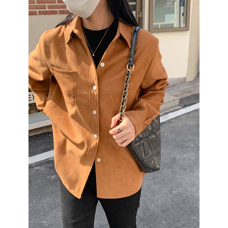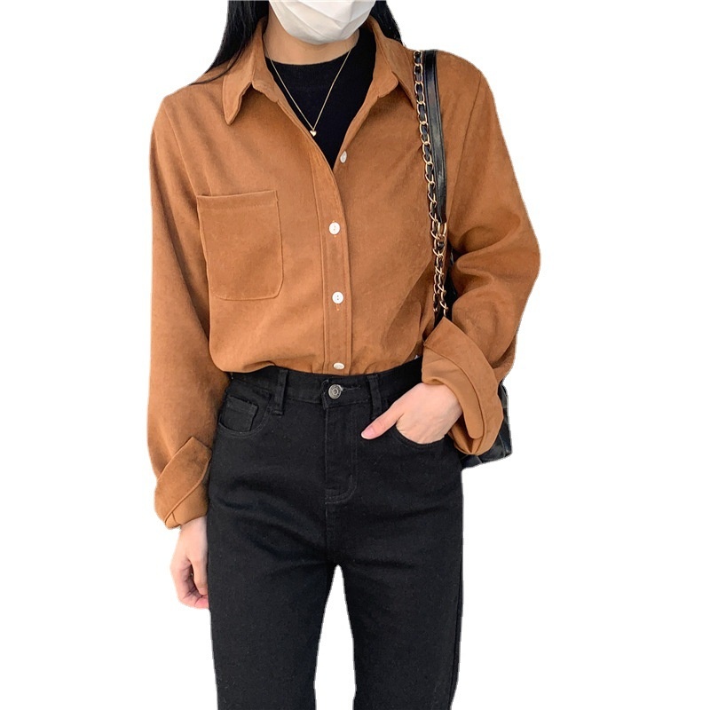Brushed Corduroy Loose Slim Thick Outer Long-sleeved Shirt Women Autumn And Winter Bottom Layered Shirt Top