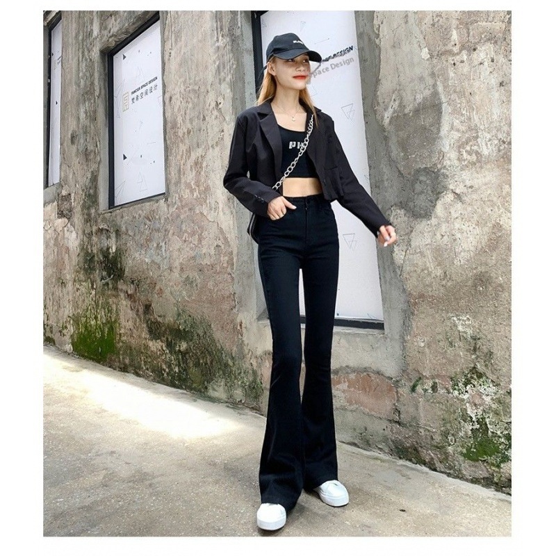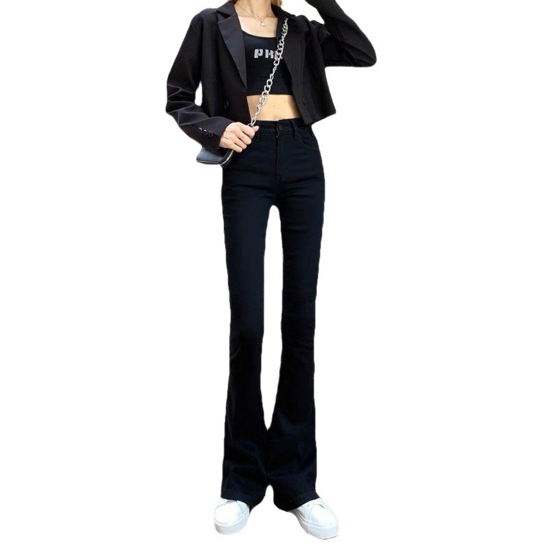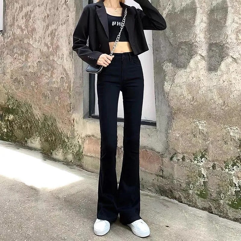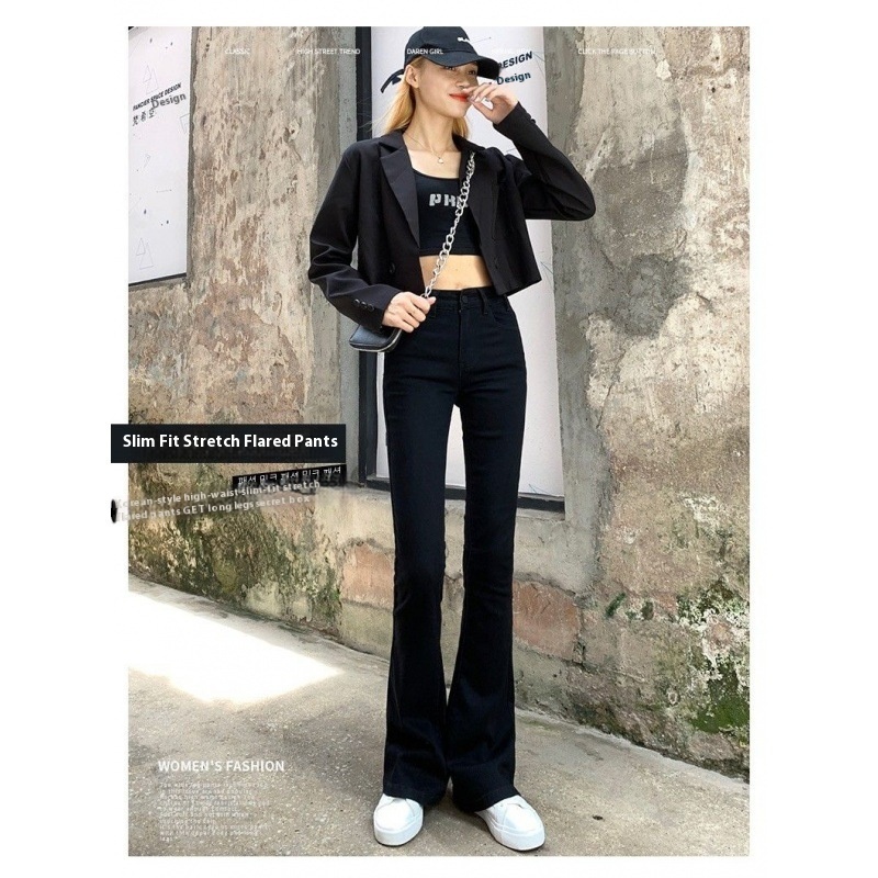 Black Skinny Jeans For Women Spring Style Net Celebrity High Waist Slim Elastic Flared Denim Trousers