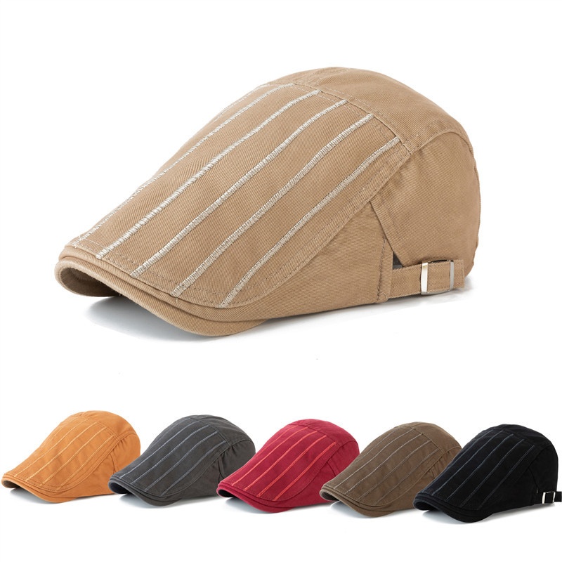 Men's Spring And Summer Beret Cotton Casual Sun Protection Peaked Cap Painter Fashion British Hat Forward Hat