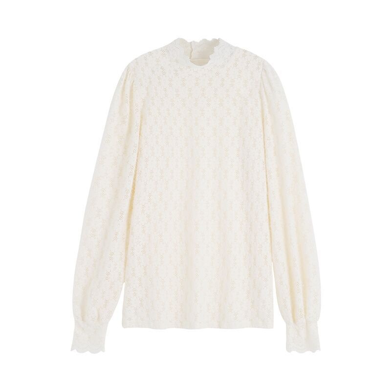Korean Version Of Long-sleeved Half-high Collar Lace Shirt For Women Autumn And Winter Style Fashionable And Stylish Inner Wear Bottoming Yarn Top