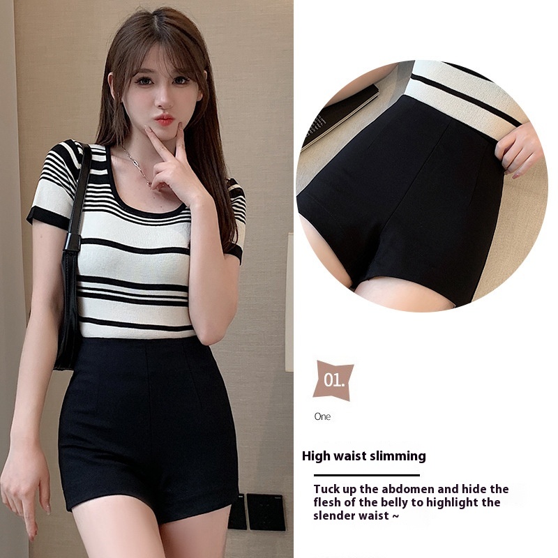 Black Tight Outer Wear Bottoming A-line Hot Pants Summer Large Size High Waist Hot Girl American Sexy Three-quarter Shorts Women