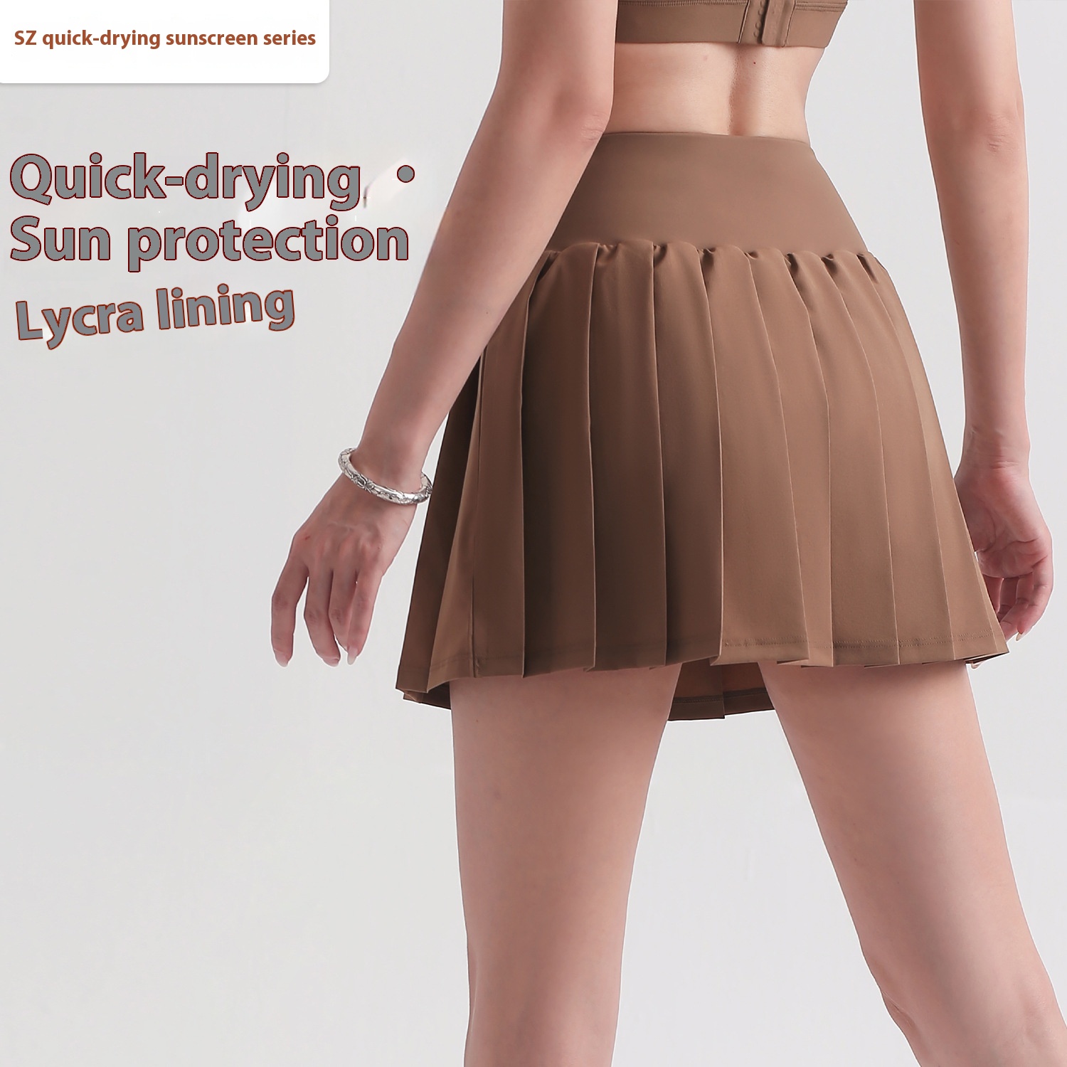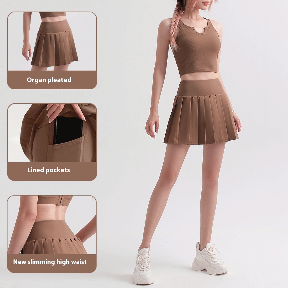 High Elastic Pleated Sports Skirt Casual Fashion Anti-exposure Lined Pocket Fitness Running Tennis Skirt