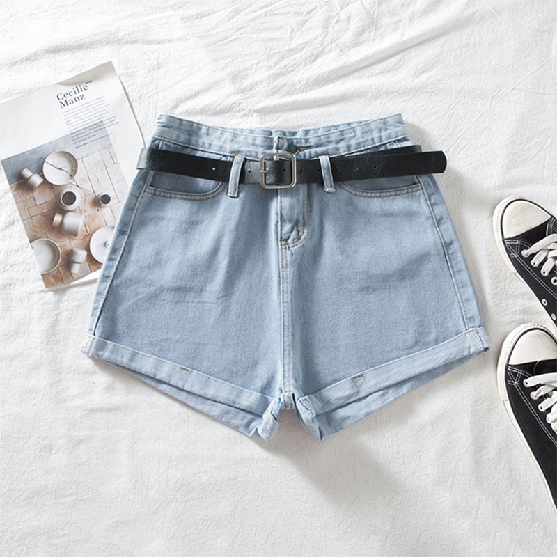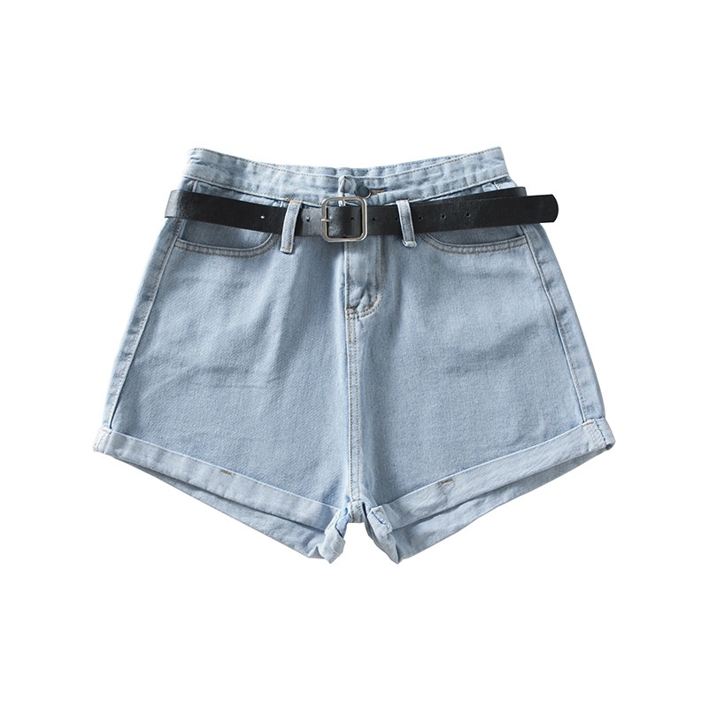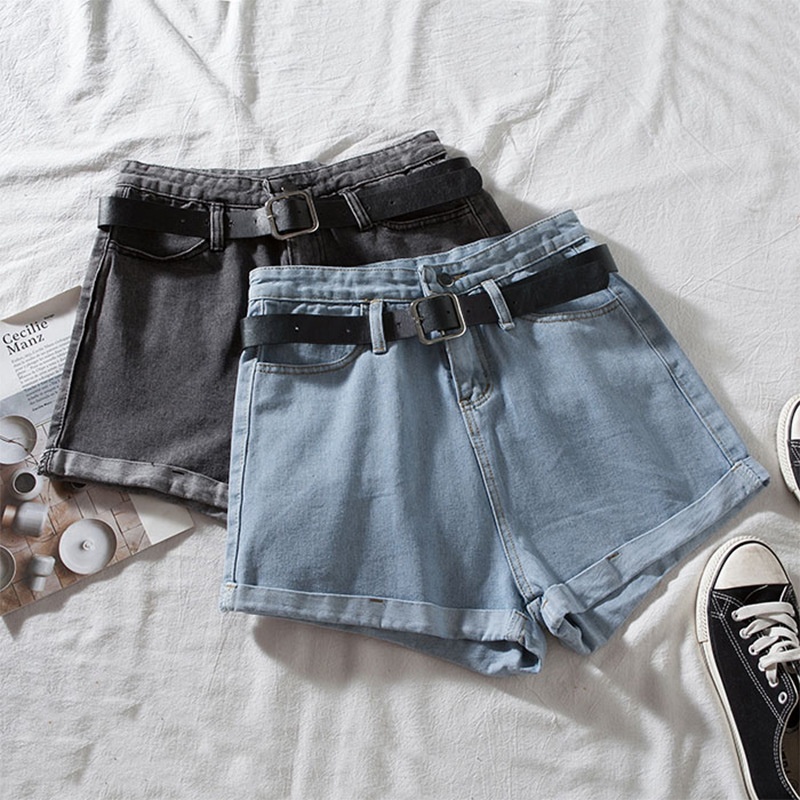 High Waist Curled Denim Wide Leg Shorts Summer Korean Version Loose Student Casual Hot Pants One Piece Dery