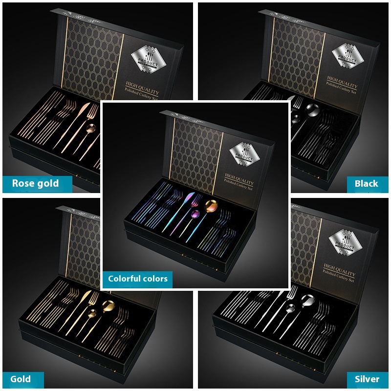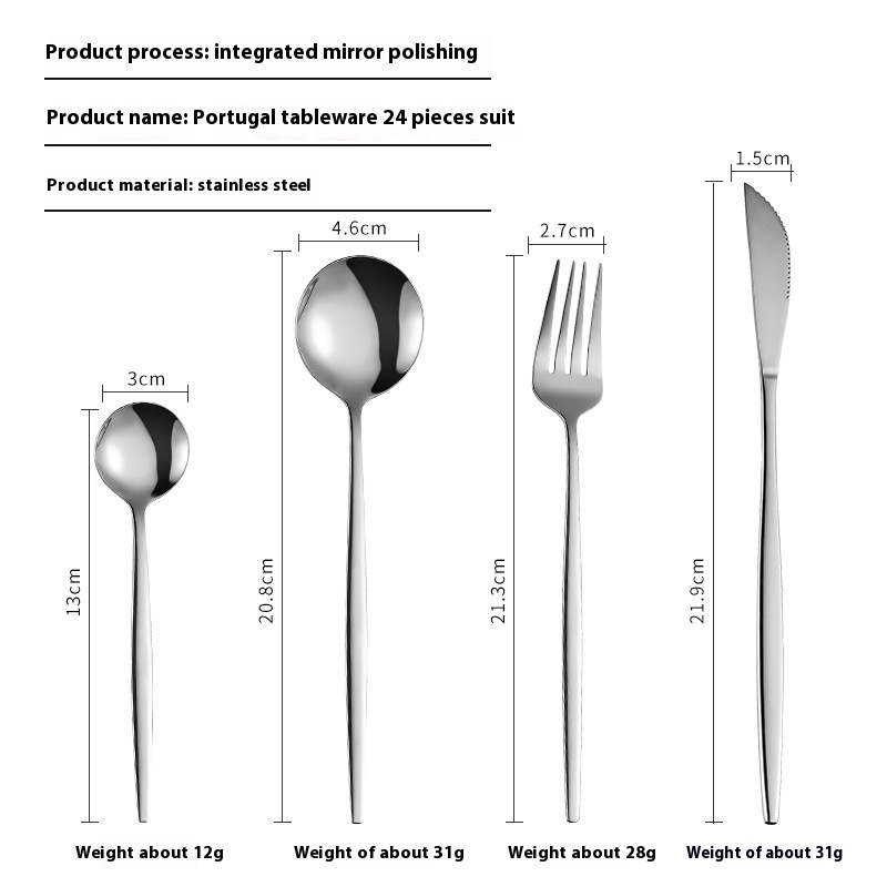 Portuguese Stainless Steel Tableware24-piece Gold-plated Western Steak Knife, Fork And Spoon Gift Box Set