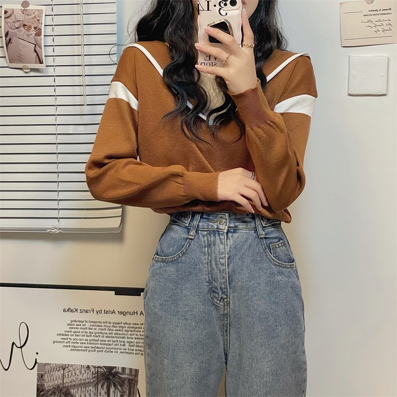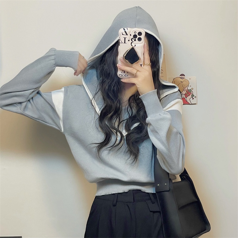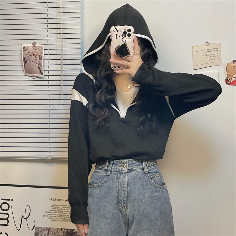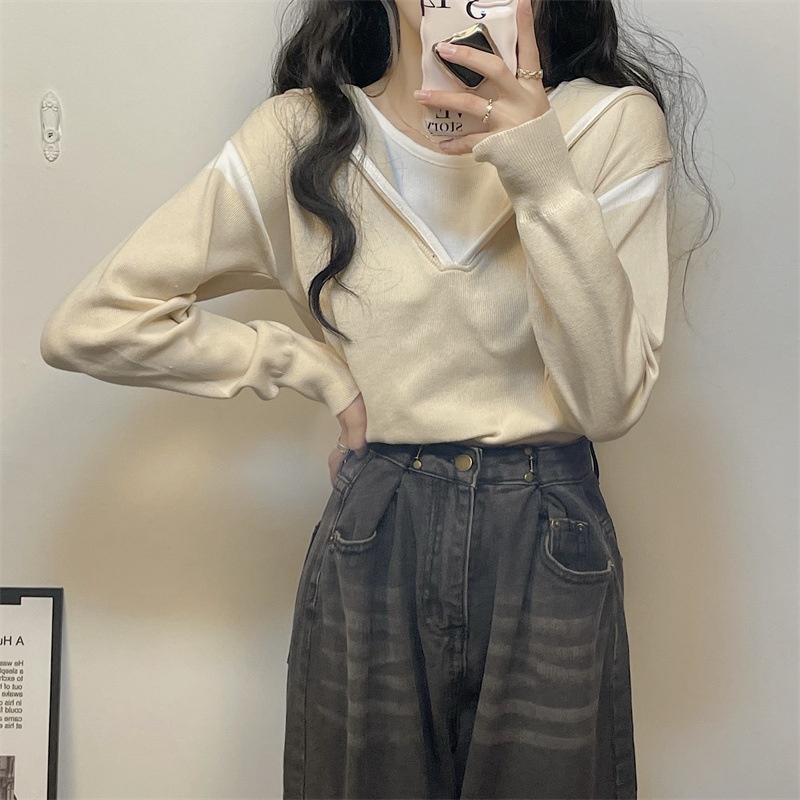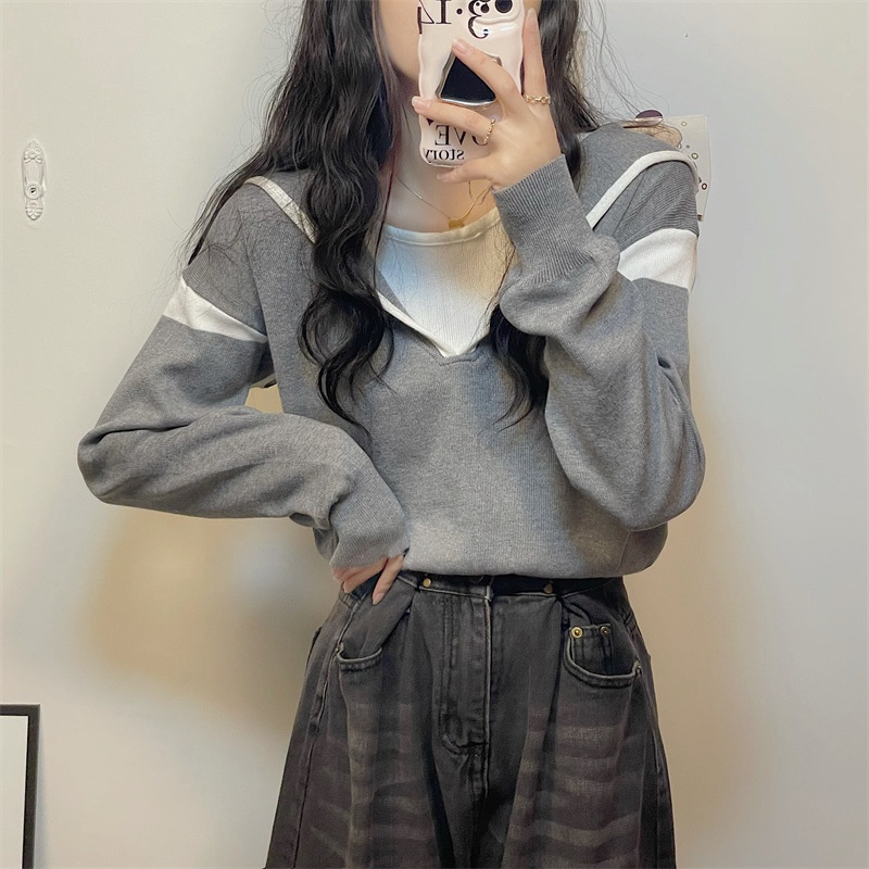 Autumn Fake Two-piece Hooded Sweater Tops For Women Long-sleeved Students'Inner Bottoming Shirt