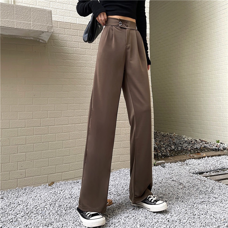 Wide-leg Pants Women Autumn Korean Style High Waist Drape Suit Pants Retro Student Casual Pants Women's Clothing