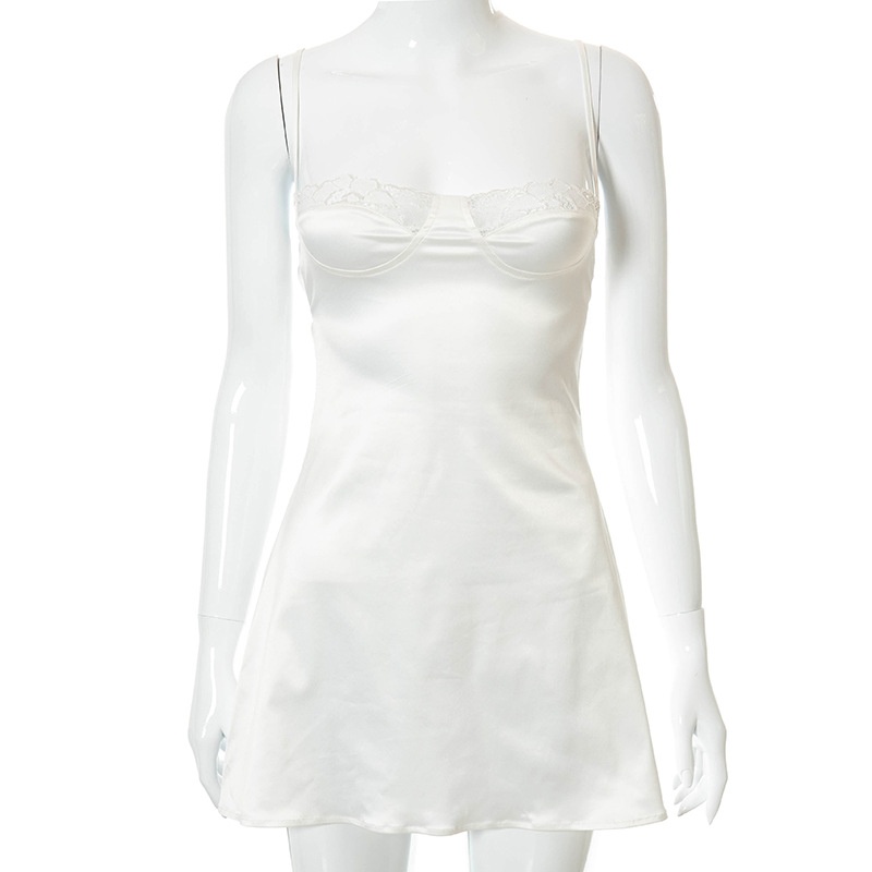 X21 DS213 European And American Women's Clothing Summer Solid Color Backless Suspender Lace Lace Casual Short Dress