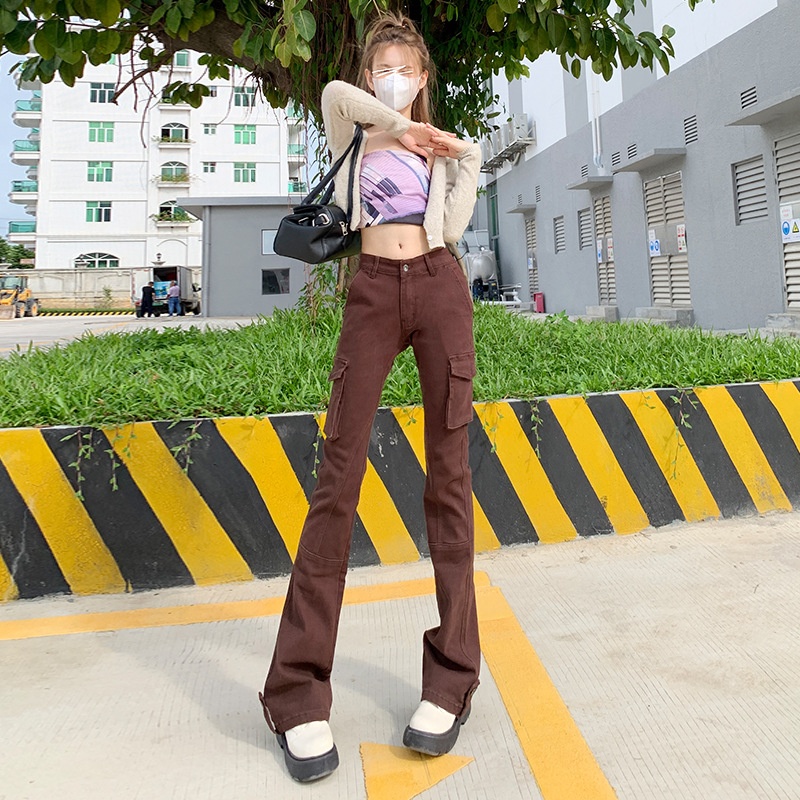 American Hottie High Street Workwear Flared Jeans For Women Spring And Autumn High Waist Slim Fit Flared Pants