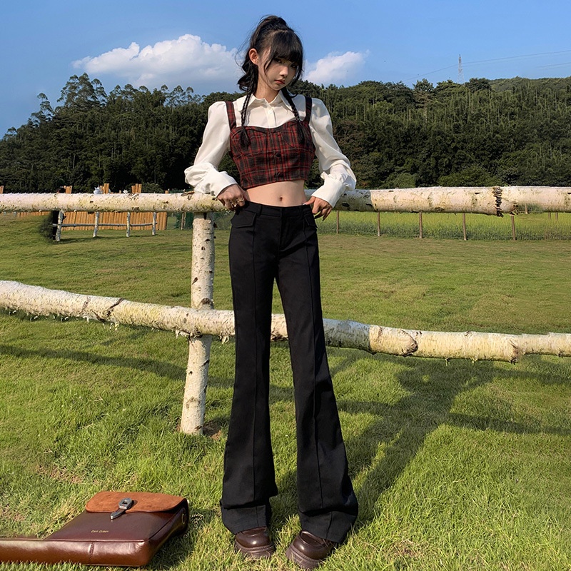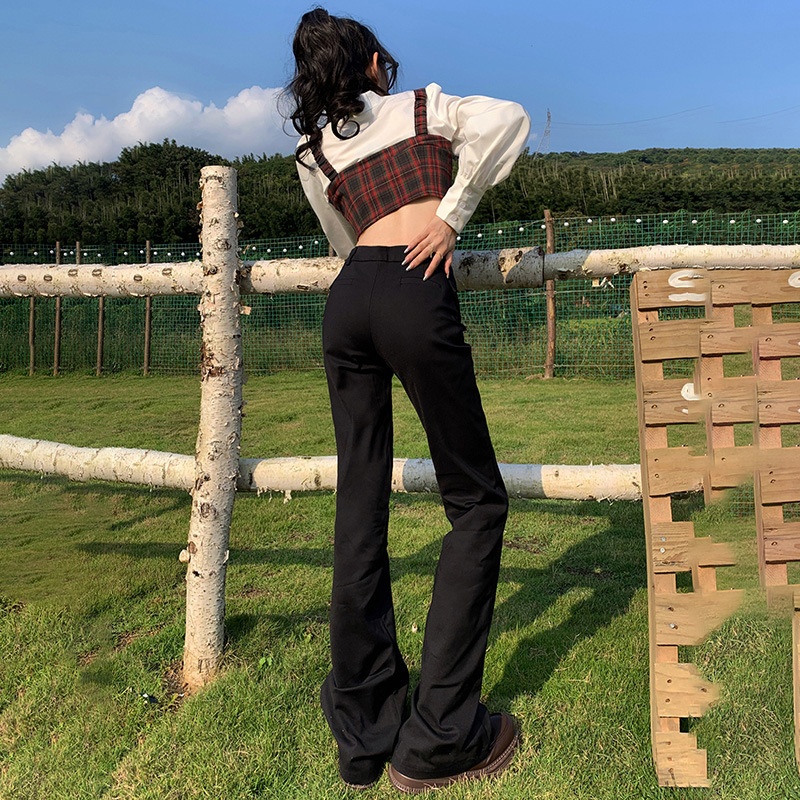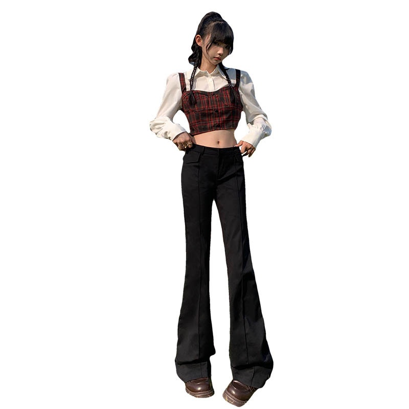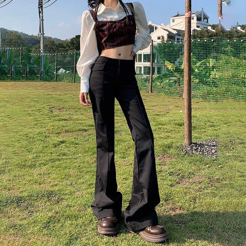 Hot Girl Low Waist Flared Pants For Women Autumn And Winter Black Slim Fit Versatile Suit Casual Trousers