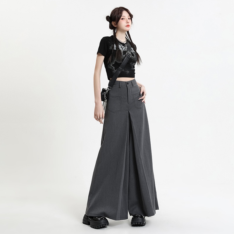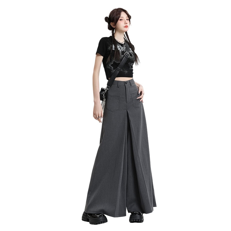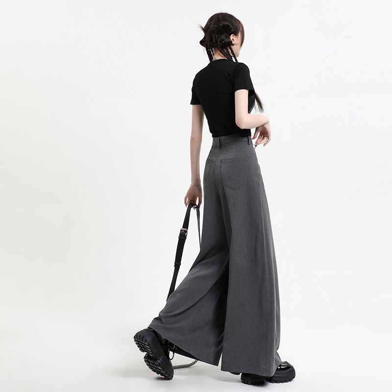 Gray American High Waist Suit Wide Leg Pants For Women Autumn Straight Loose Drape Slim Casual Pants