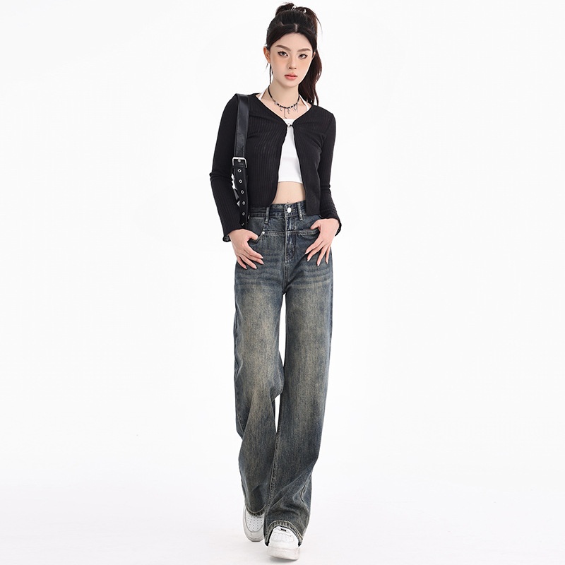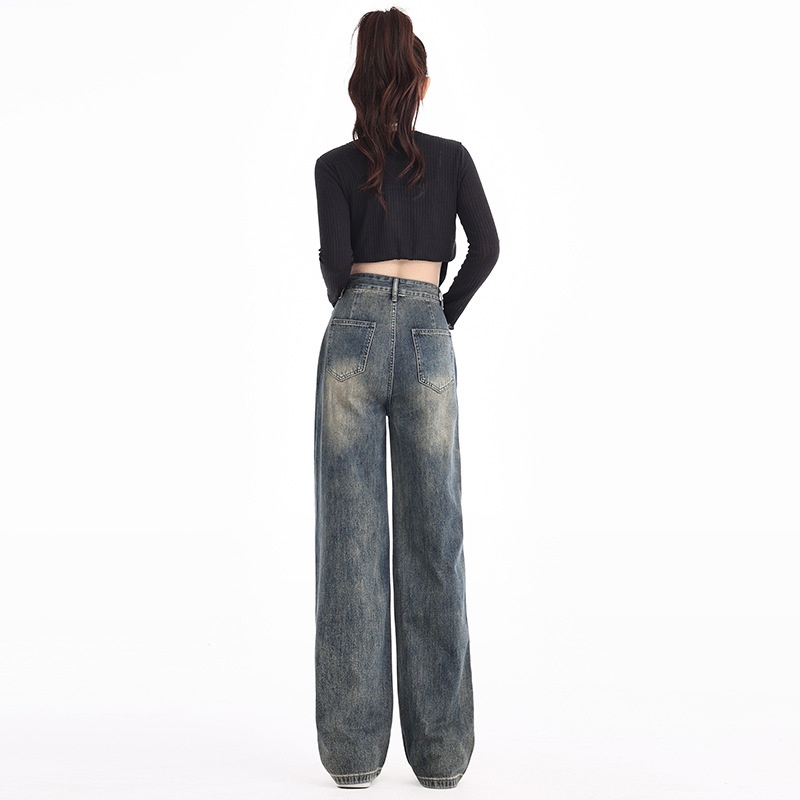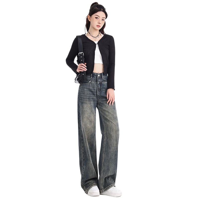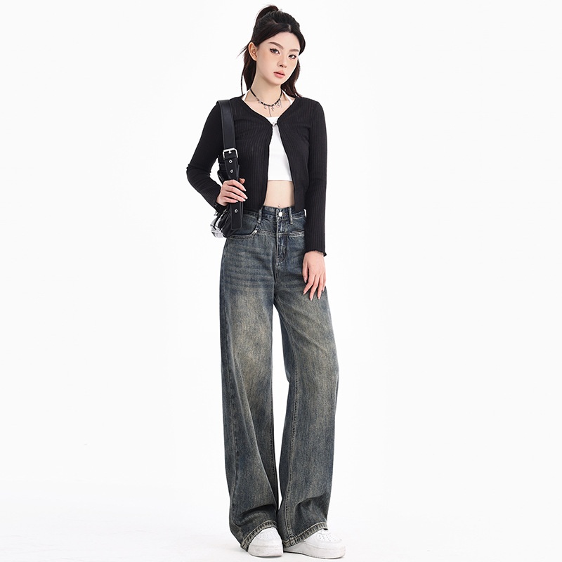 Designer Retro Wide-leg Jeans For Women Spring Straight Loose High Waist Slim Floor-length Trousers