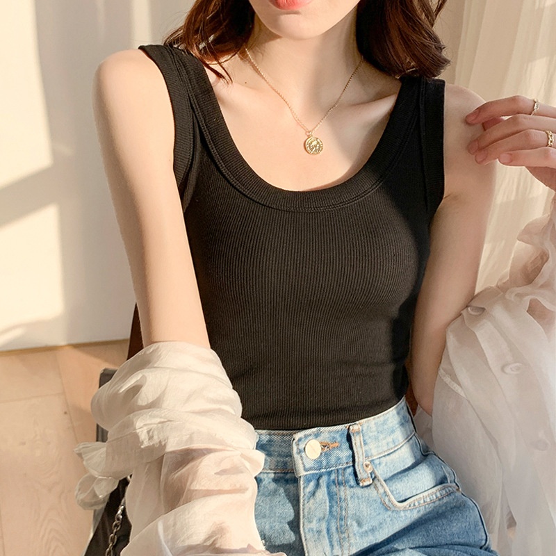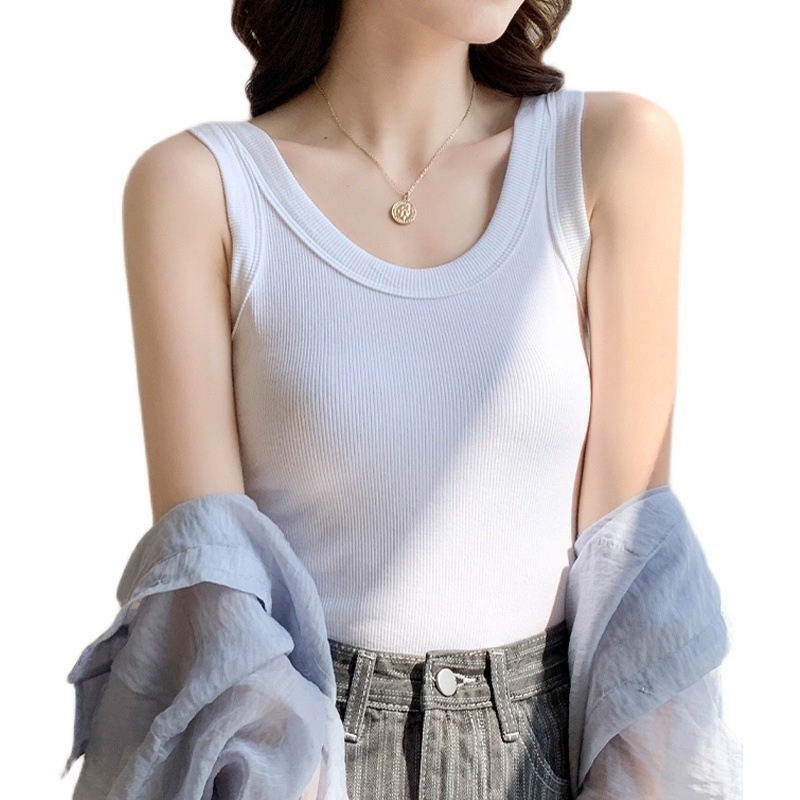 U-neck Solid Color Threaded Camisole Vest For Women To Wear As An Outer Layer Summer Slim Fit All-match Sleeveless T-shirt Low Collar