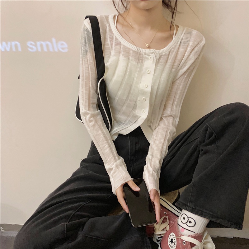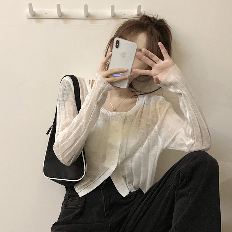 White Sun Protection Clothing Women's Summer Thin Cardigan Jacket Design Long-sleeved Short Knitted Sweater Top