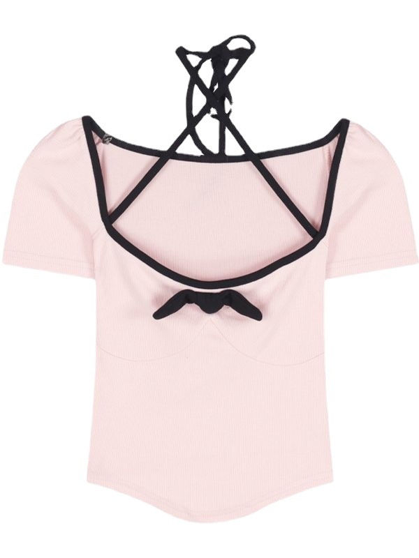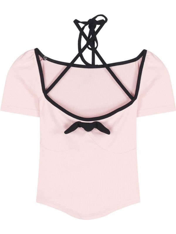 Pure Desire Bowknot U-neck Sexy Exposed Clavicle T-shirt Female Summer Hot Girl Short-sleeved Top Short Style Low-cut Tight Bottoming Shirt