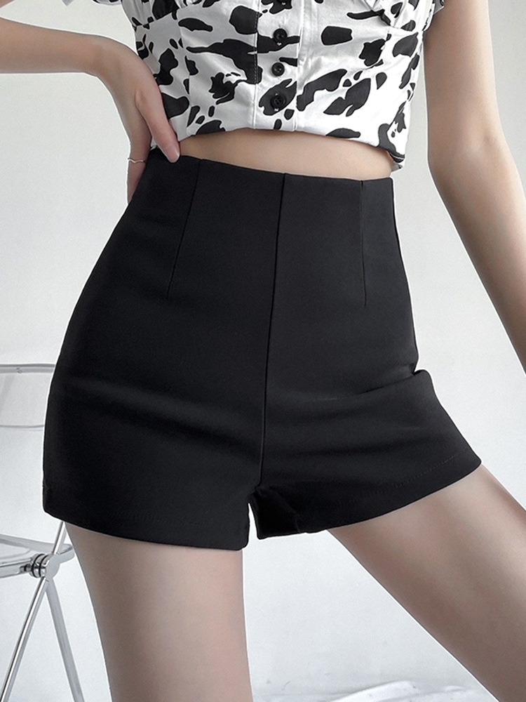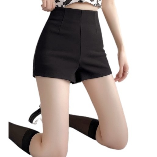 Plush Suit Fabric Wrinkle-free Roman Shortsy High Waist Slim Fit Skin-friendly Women's Hip Pants Slightly Elastic Breathable Hot Pants
