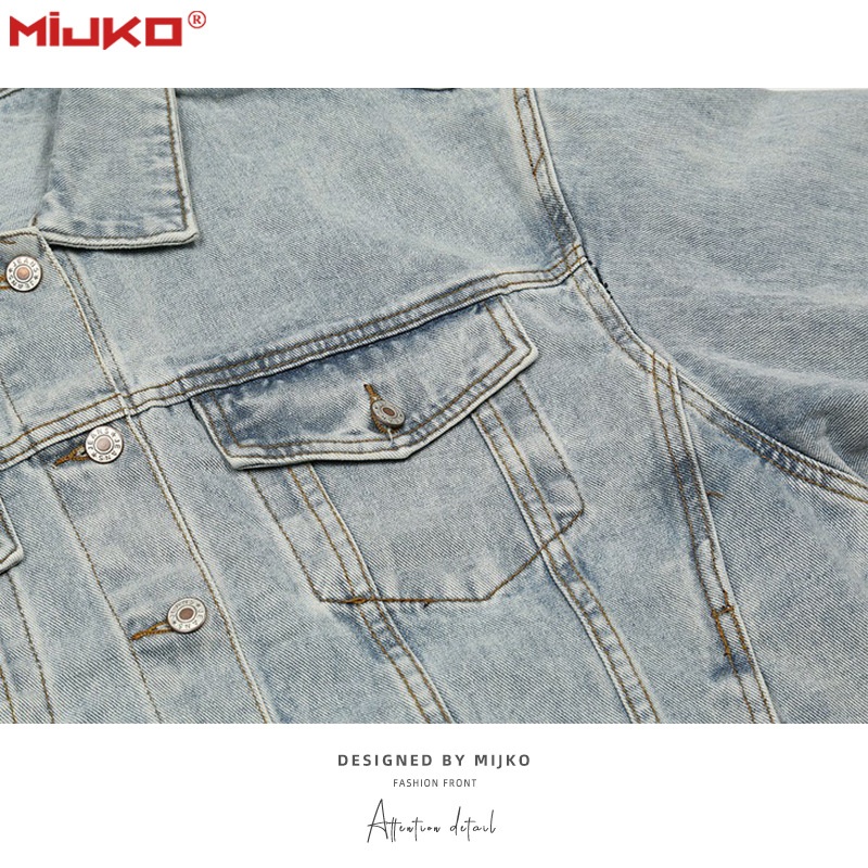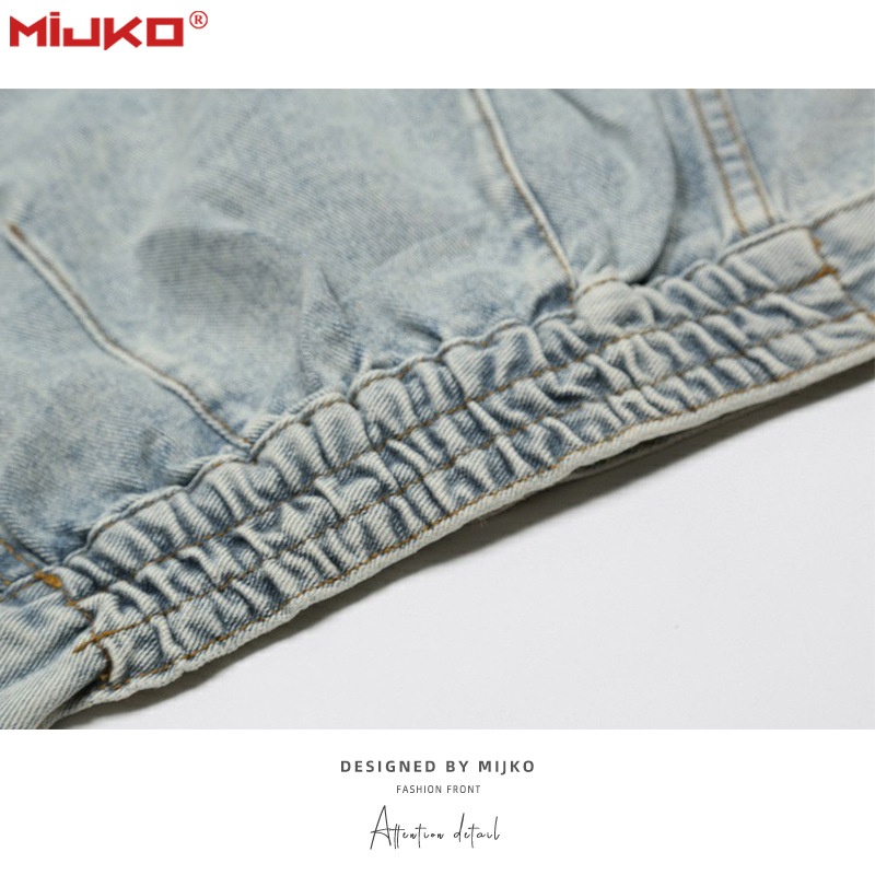 MIJKOWomen's Men's Autumn And Winter Hip-hop Washed Old Jacket High Street Bluey Men And Women's Neutral Denim Jacket