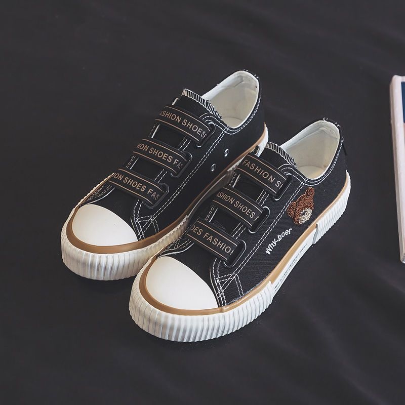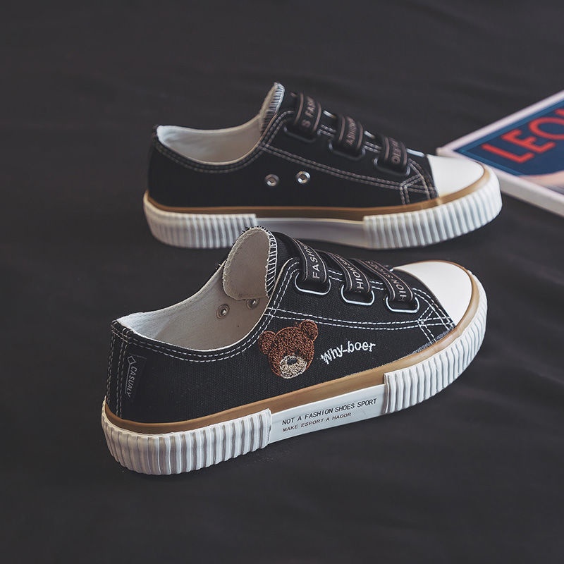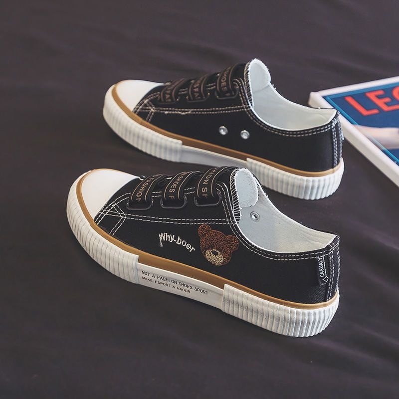 Autumn Low-top Bear Canvas Shoes For Womeny Students Korean Version All-match Casual Flat Retro Board Shoes