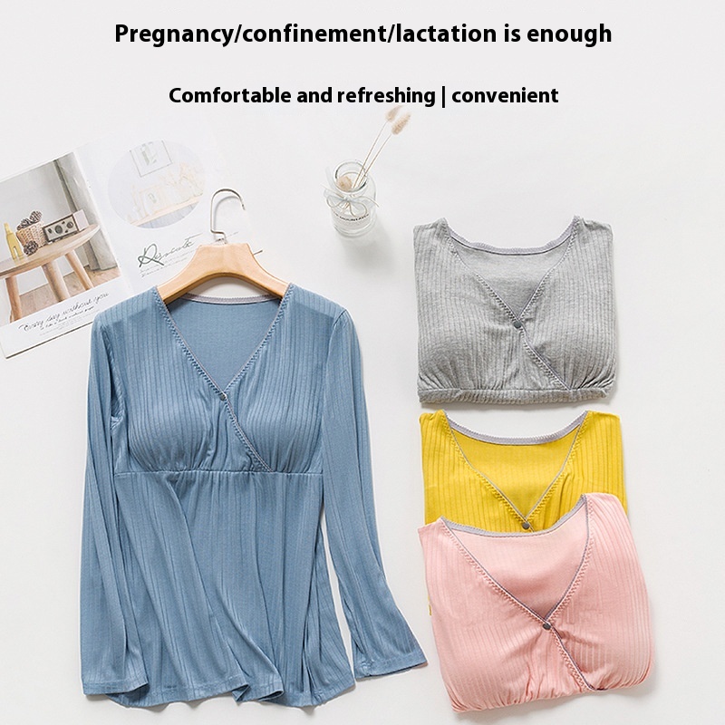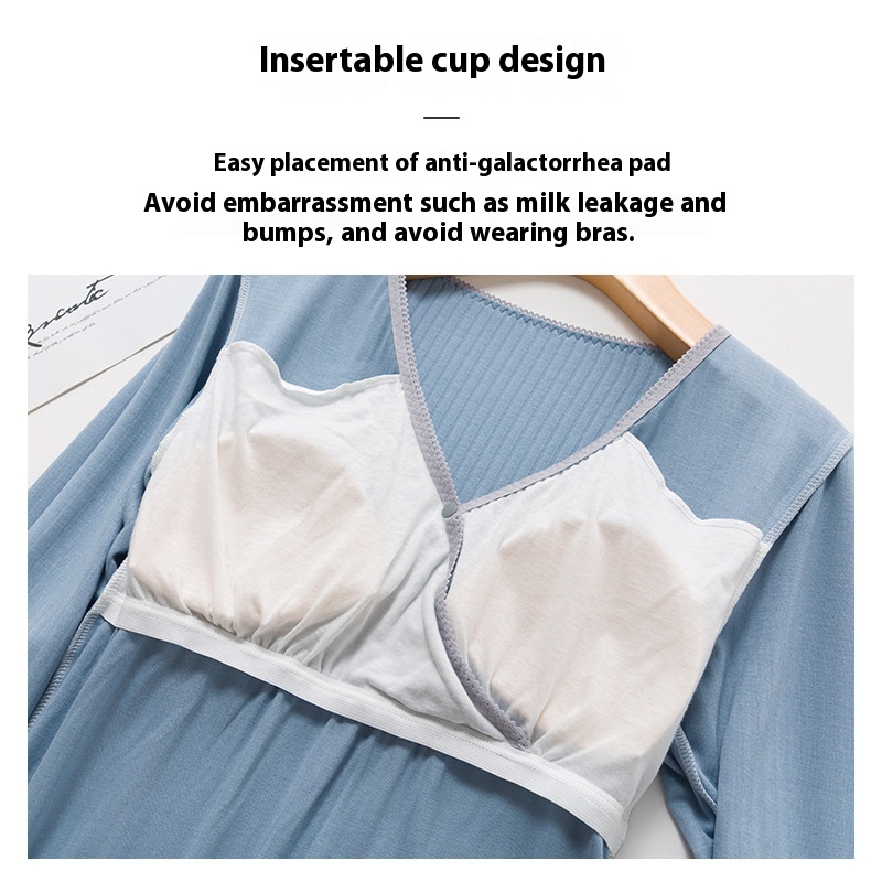 Spring And Summer Pregnant Women's Convenient Breastfeeding Anti-exposure Outer Wear Breastfeeding Tops For Postpartum Mothers Comfortable Sleeping Breastfeeding Pajamas Thin