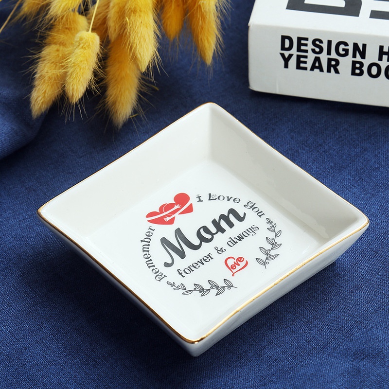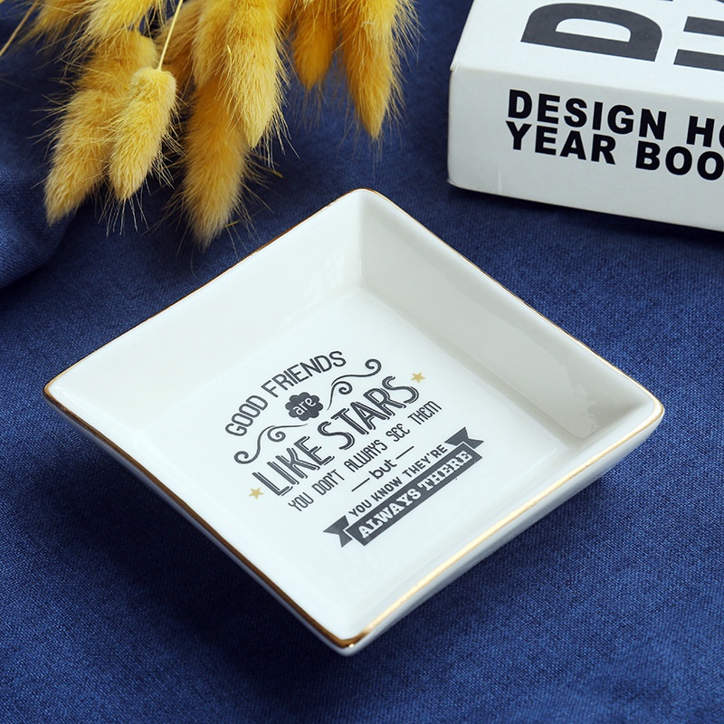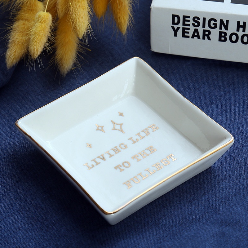 Square Gold-rimmed Storage Tray Ring Necklace Earrings Ceramic Jewelry Tray