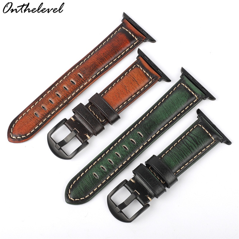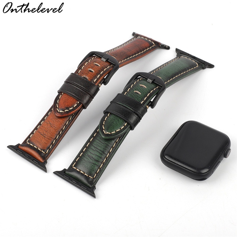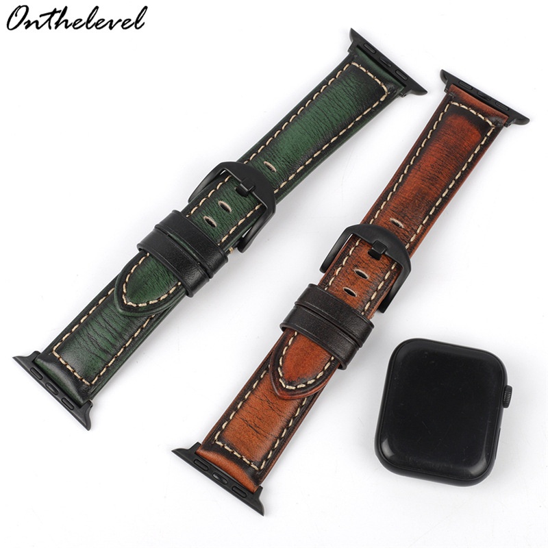 Cracked Color-changing Leather Top Layer Cowhide Watch Strap Compatible With Apple Connector Apple Watch2345 Generation