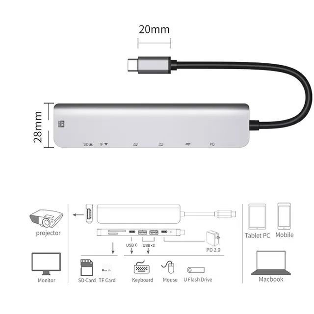 7-in-1 Docking Station CTo HDMIPD2.0 CFemale Data SDTFU2*2 Multi-interface