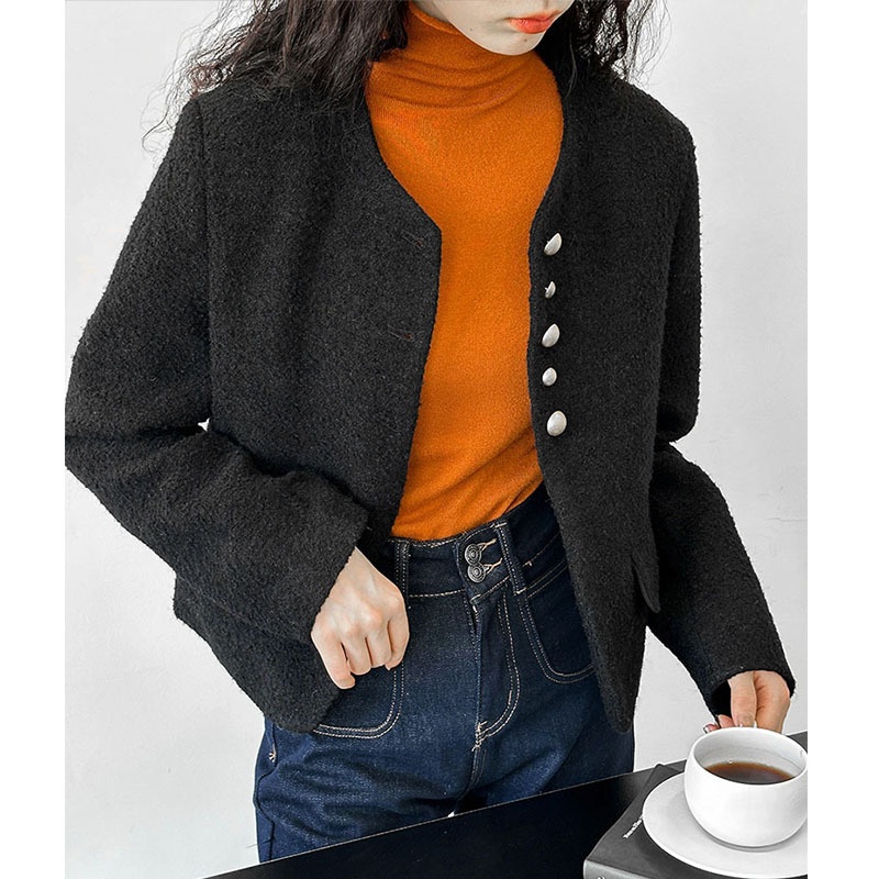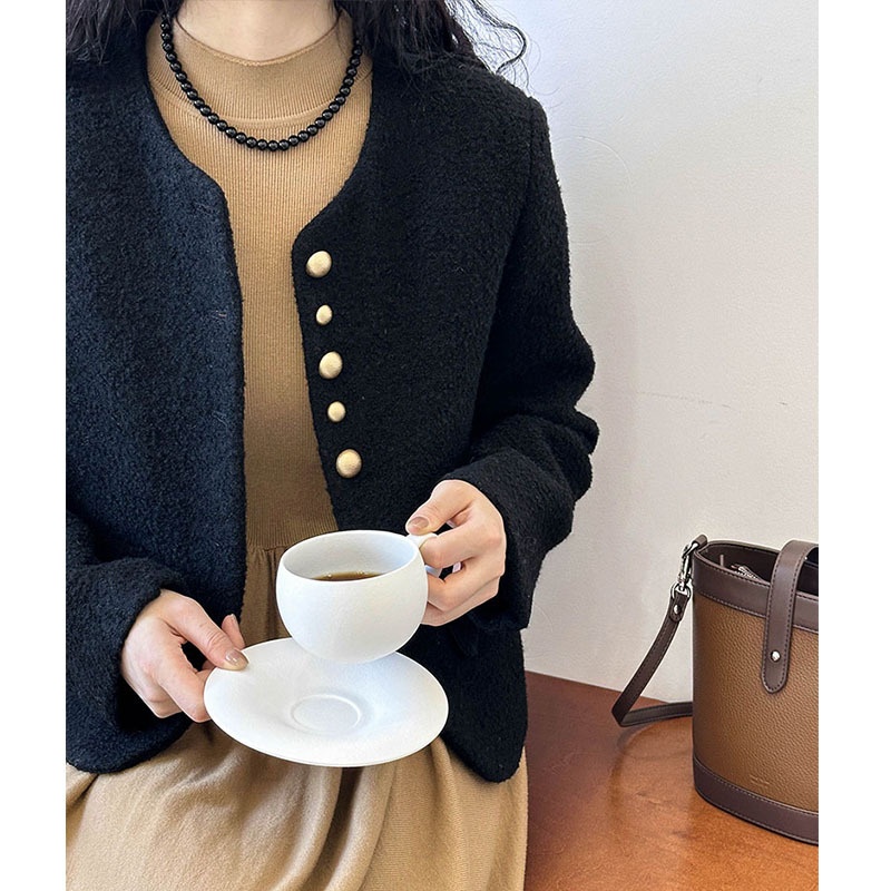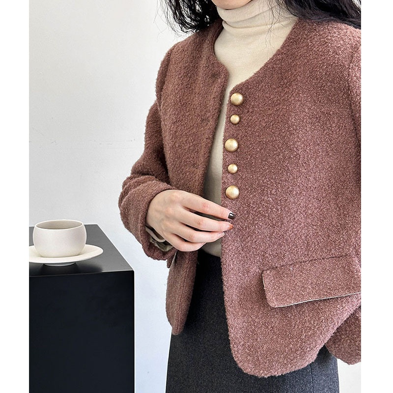 Juzhi Autumn And Winter Style Small Fragrance Style Down Solid Color Wool Cardigan Jacket Female Temperament Gentle Top8719