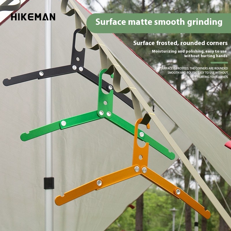 Outdoor Folding Aluminum Alloy Clothes Hanger Three Fold Portable Clothes Hanger Camping Self-driving Travel Business Trip Ultra-light Telescopic Clothes Hanger