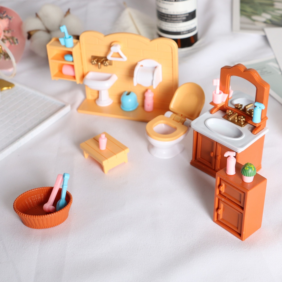 Dollhouse Dollhouse Miniature Food And Play Scene Mini Furniture Model Pocket Bathroom Toilet Basin Series
